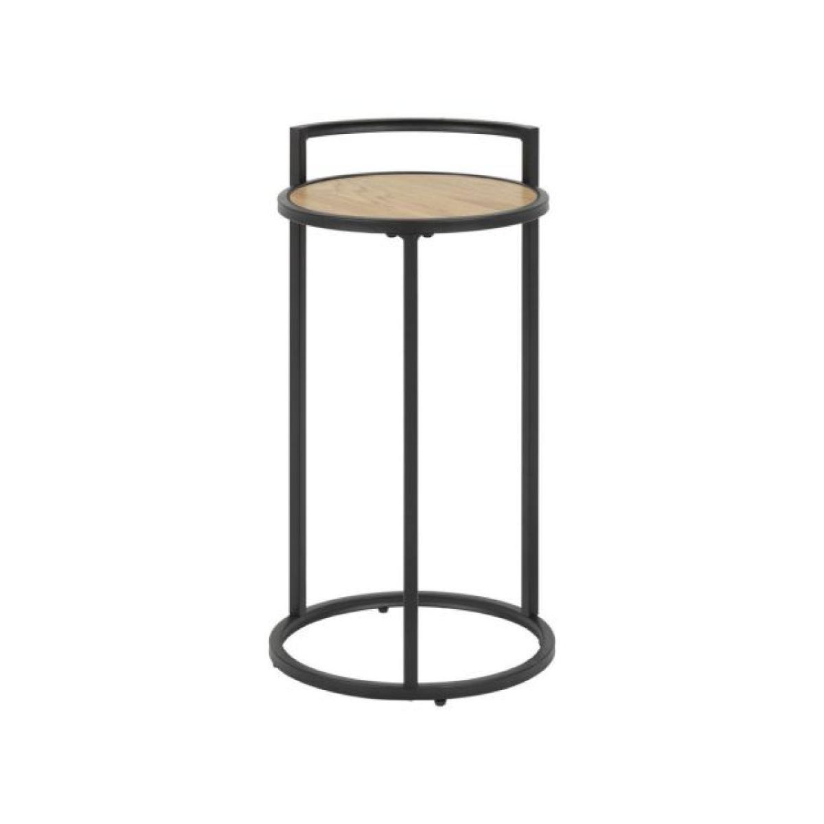 The modern industrial-style round lamp table from the Seaford series is a modern and unique design that would look striking in your home. It fits perfectly not only in loft interiors, but also in Scandinavian ones. The frame was made of black powder-coated metal with a matte finish, while the top was made of furniture board in oak veneer in a 'wild oak' colour. Complete the industrial style look for your home with the other options in the Seaford range including - a Coffee Table W/ Magazine Rack, a Nest of 2 Tables, a Sofa Table and a Wall Unit. All of which are available to purchase separately. Base - Metal Powder Coated in Matt Black Top - Wild Oak Dimensions - L 33 x W 35 x H 65cm Assemby Required *Please note, all screens vary in colour reproduction and whilst every effort has been made to display the colour as accurately as possible it is for guidance only.