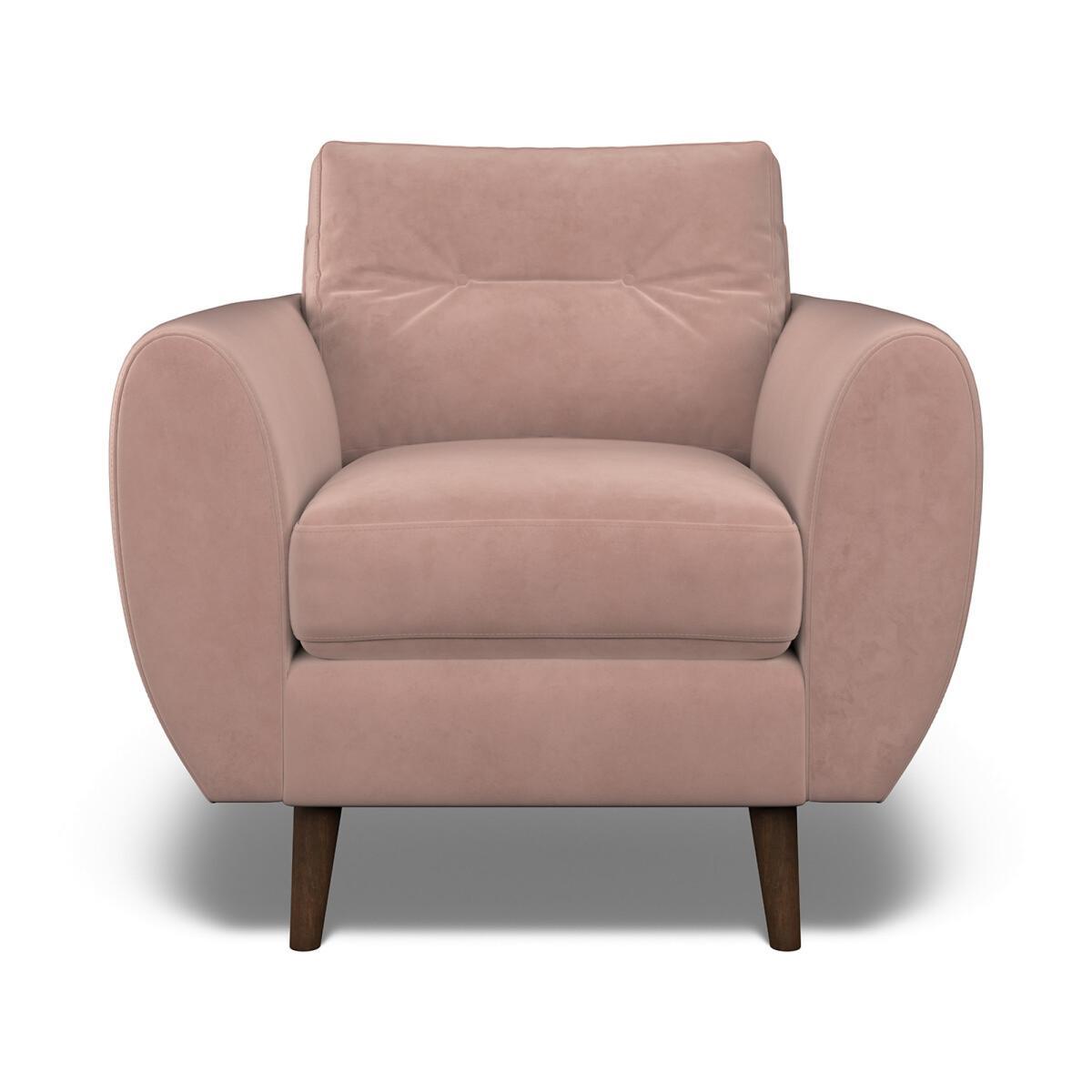 Mid century design meets maximum comfort. Curvacious arms, deep buttoned back and the plumpest side cushions make the Ada that little bit extra. If buttons aren’t your thing, the Ada is also available with a standard back. Choose from our soft brushed fabric for ultimate coziness, soft woven for a textured look or velvet for luxe living. All made to order sofas are carefully manufactured in the UK.Each hardwood frame is dowelled, glued, and screwed before being paired with the finest fabrics and fillings. And it doesn't stop there - for customer peace of mind and safety, all frames and fabrics are rigorously examined, inspected, and tested to the highest standards. Product Specifications:. Product Dimensions: L90cmxW88cmxH9. 1cm. Fabric: Velvet - 100% Polyester. Feet: Dark Wood Packaged Dimensions: 91cmx89cmx92 - Please remember to measure your available space before ordering. The Rosa Range is also available in Velvet & Soft Brushed in a variety of colours. This product will be dispatched by one of our trusted suppliers. You’ll be contacted by their selected courier about your delivery. Your product will be delivered to your room of Choice. The feet for the product will be assembled once delivered.