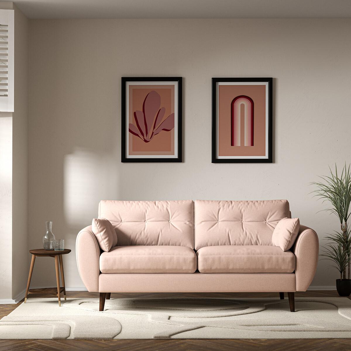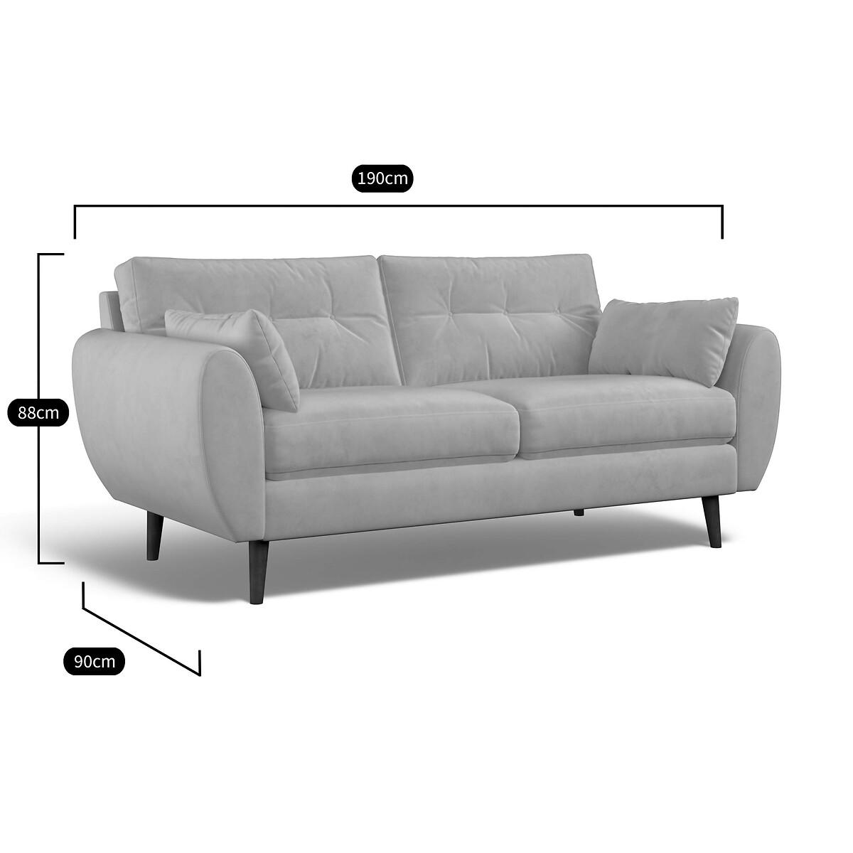 Mid-century design meets maximum comfort. A classic buttoned back is paired with a beautiful elliptical arm shape, creating the perfect modern retro look. Plump side cushions add extra cosiness, whereas foam and fibre fillings ensure this sofa keeps its shape without compromising on comfort. Scandi-style splayed legs, are the ideal partner to Ada's clean curved design. Choose from our soft brushed fabric for ultimate cosiness, soft woven for a textured look or velvet for luxe living. The Ada is available in several sizes, including an armchair, snuggle chair, 2 seater, 3 seater and corner sofa. The Ada is also available with a plain back. Product details• Soft Brushed - A cosy and practical flat woven fabric featuring a subtle brushed handle for a superbly snuggly seat. Check it's right for you - order a FREE swatch above.• Created with medium density foam fillings for a sofa with a level of comfort suitable for most. • Foam filled seats provide great support without compromising on comfort, and require little maintenance to keep their shape, ensuring your sofa looks as good as it does the day you welcomed it into your living room.• Fibre backs provide extra softness and give you that "sink in" feeling.• Two rectangular scatter cushions included for extra arm comfort.• Just flip to freshen up - both the seat cushions and back cushions are fully reversible so it's easy to keep your sofa looking its best.• Seat covers are removal (zip fastening). Back covers not removable due to button finishes. • FSC® solid beech hardwood frame - made of wood from responsibly managed forests that provide environmental, social and economic benefits.• Tapered feet crafted entirely from solid wood ensure durability and stability.• Removable feet.• Lovingly handmade in the UK.All our made to order sofas are carefully manufactured in the UK.Each hardwood frame is dowelled, glued, and screwed before being paired with the finest fabrics and fillings. And it doesn't stop there - for customer peace of mind and safety, all frames and fabrics are rigorously examined, inspected, and tested to the highest standards. All filling material(s) and covering fabric(s) meet the requirements for resistance to cigarette and match ignition in the 1988 safety regulations. This sofa comes with a 3 year manufacturer warranty from date of delivery (subject to terms and conditions)Product composition• Fabric - Soft Brushed (100% polyester)• Seat Fillings - Foam and fibre• Back Fillings - Fibre• Frame - Beech Hardwood (FSC), OSB (UK origin, FSC)• Feet - Solid Wood. Product Dimensions Overall width: 190 cm. Overall depth: 90 cm. Overall height: 88 cm. Seat height: 48 cm. Seat depth: 53 cm. Seat width between the arms: 155 cm. Back height (from base): 70 cm. Back height (from seat): 45 cm. Arm height (from floor): 66 cm. Arm height (from seat): 21 cm Clearance to floor (leg height): 18 cm. Small scatter cushions x 2: L55 cm x W30 cm. Please remember to measure your available space before ordering to be sure your sofa will fit. Don't forget to measure accessways and corners, and consider any obstacles. Package DimensionsL19. 8 cm x W92 cm x H91 cm, Weight 55 kg. This product will be dispatched by one of our trusted suppliers. You’ll be contacted by their selected courier about your delivery. Your product will be delivered to your room of choice. Feet may be assembled on arrival. BELFI01