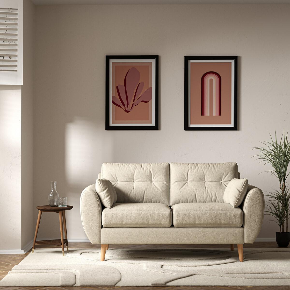Mid-century design meets maximum comfort. A classic buttoned back is paired with a beautiful elliptical arm shape, creating the perfect modern retro look. Plump side cushions add extra cosiness, whereas foam and fibre fillings ensure this sofa keeps its shape without compromising on comfort. Scandi-style splayed legs, are the ideal partner to Ada's clean curved design. Choose from our soft brushed fabric for ultimate cosiness, soft woven for a textured look or velvet for luxe living. The Ada is available in several sizes, including an armchair, snuggle chair, 2 seater, 3 seater and corner sofa. The Ada is also available with a plain back. Product details• Soft Woven - a flat jaquard woven fabric made from a two colours of yarn creates a slightly speckled effect, whilst viscose adds softness. A textured criss-cross appearance helps to disguise any imperfections that might occur as a result of family life. Check it's right for you - order a FREE swatch above.• Created with medium density foam fillings for a sofa with a level of comfort suitable for most. • Foam filled seats provide great support without compromising on comfort, and require little maintenance to keep their shape, ensuring your sofa looks as good as it does the day you welcomed it into your living room.• Fibre backs provide extra softness and give you that "sink in" feeling.• Two rectangular scatter cushions included for extra arm comfort.• Just flip to freshen up - both the seat cushions and back cushions are fully reversible so it's easy to keep your sofa looking its best.• Seat covers are removal (zip fastening). Back covers not removable due to button finishes. • FSC® solid beech hardwood frame - made of wood from responsibly managed forests that provide environmental, social and economic benefits.• Tapered feet crafted entirely from solid wood ensure durability and stability.• Removable feet.• Lovingly handmade in the UK.All our made to order sofas are carefully manufactured in the UK.Each hardwood frame is dowelled, glued, and screwed before being paired with the finest fabrics and fillings. And it doesn't stop there - for customer peace of mind and safety, all frames and fabrics are rigorously examined, inspected, and tested to the highest standards. All filling material(s) and covering fabric(s) meet the requirements for resistance to cigarette and match ignition in the 1988 safety regulations. This sofa comes with a 3 year manufacturer warranty from date of delivery (subject to terms and conditions)Product composition• Fabric - Soft Woven (80% polyester, 20% viscose)• Seat Fillings - Foam and fibre• Back Fillings - Fibre• Frame - Beech Hardwood (FSC), OSB (UK origin, FSC)• Feet - Solid Wood. Product Dimensions Overall width: 165 cm. Overall depth: 90 cm. Overall height: 88 cm. Seat height: 48 cm. Seat depth: 53 cm. Seat width between the arms: 130 cm. Back height (from base): 70 cm. Back height (from seat): 45 cm. Arm height (from floor): 66 cm. Arm height (from seat): 21 cm Clearance to floor (leg height): 18 cm. Small scatter cushions x 2: L55 cm x W30 cm. Please remember to measure your available space before ordering to be sure your sofa will fit. Don't forget to measure accessways and corners, and consider any obstacles. Package DimensionsL17. 1 cm x W92 cm x H91 cm, Weight 49 kg. This product will be dispatched by one of our trusted suppliers. You’ll be contacted by their selected courier about your delivery. Your product will be delivered to your room of choice. Feet may be assembled on arrival. BELFI01