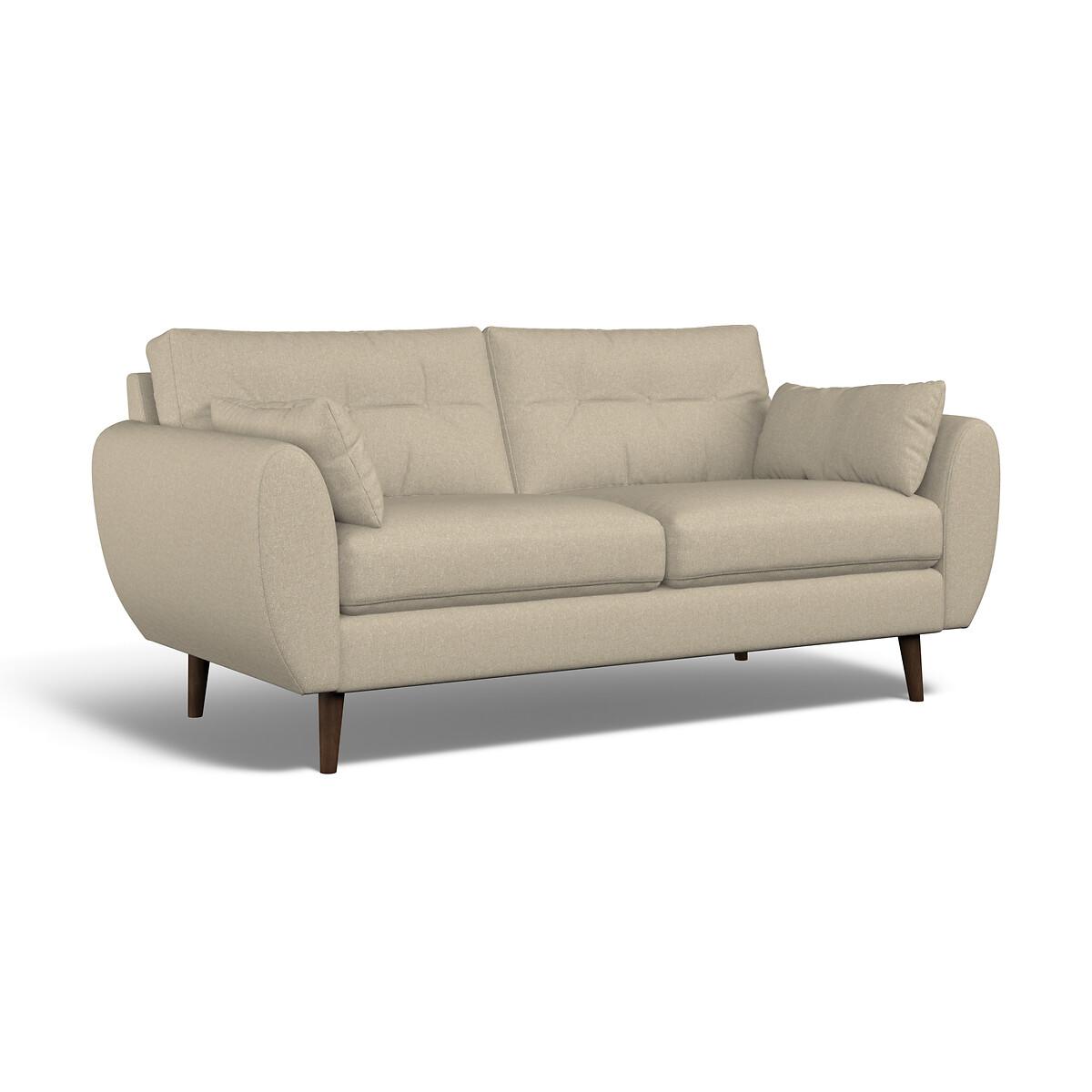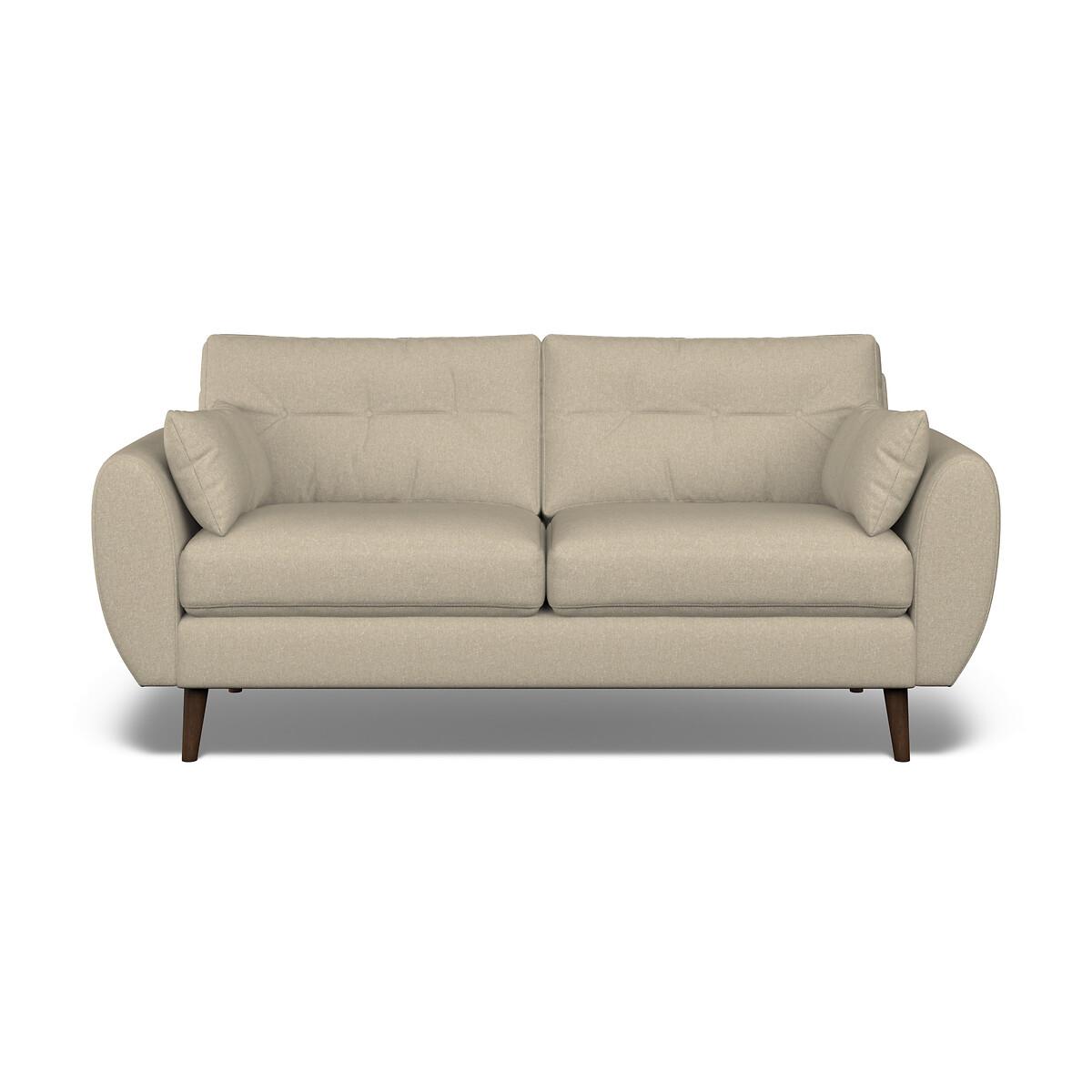 Mid-century design meets maximum comfort. A classic buttoned back is paired with a beautiful elliptical arm shape, creating the perfect modern retro look. Plump side cushions add extra cosiness, whereas foam and fibre fillings ensure this sofa keeps its shape without compromising on comfort. Scandi-style splayed legs, are the ideal partner to Ada's clean curved design. Choose from our soft brushed fabric for ultimate cosiness, soft woven for a textured look or velvet for luxe living. The Ada is available in several sizes, including an armchair, snuggle chair, 2 seater, 3 seater and corner sofa. The Ada is also available with a plain back. Product details• Soft Woven - a flat jaquard woven fabric made from a two colours of yarn creates a slightly speckled effect, whilst viscose adds softness. A textured criss-cross appearance helps to disguise any imperfections that might occur as a result of family life. Check it's right for you - order a FREE swatch above.• Created with medium density foam fillings for a sofa with a level of comfort suitable for most. • Foam filled seats provide great support without compromising on comfort, and require little maintenance to keep their shape, ensuring your sofa looks as good as it does the day you welcomed it into your living room.• Fibre backs provide extra softness and give you that "sink in" feeling.• Two rectangular scatter cushions included for extra arm comfort.• Just flip to freshen up - both the seat cushions and back cushions are fully reversible so it's easy to keep your sofa looking its best.• Seat covers are removal (zip fastening). Back covers not removable due to button finishes. • FSC® solid beech hardwood frame - made of wood from responsibly managed forests that provide environmental, social and economic benefits.• Tapered feet crafted entirely from solid wood ensure durability and stability.• Removable feet.• Lovingly handmade in the UK.All our made to order sofas are carefully manufactured in the UK.Each hardwood frame is dowelled, glued, and screwed before being paired with the finest fabrics and fillings. And it doesn't stop there - for customer peace of mind and safety, all frames and fabrics are rigorously examined, inspected, and tested to the highest standards. All filling material(s) and covering fabric(s) meet the requirements for resistance to cigarette and match ignition in the 1988 safety regulations. This sofa comes with a 3 year manufacturer warranty from date of delivery (subject to terms and conditions)Product composition• Fabric - Soft Woven (80% polyester, 20% viscose)• Seat Fillings - Foam and fibre• Back Fillings - Fibre• Frame - Beech Hardwood (FSC), OSB (UK origin, FSC)• Feet - Solid Wood. Product Dimensions Overall width: 190 cm. Overall depth: 90 cm. Overall height: 88 cm. Seat height: 48 cm. Seat depth: 53 cm. Seat width between the arms: 155 cm. Back height (from base): 70 cm. Back height (from seat): 45 cm. Arm height (from floor): 66 cm. Arm height (from seat): 21 cm Clearance to floor (leg height): 18 cm. Small scatter cushions x 2: L55 cm x W30 cm. Please remember to measure your available space before ordering to be sure your sofa will fit. Don't forget to measure accessways and corners, and consider any obstacles. Package DimensionsL19. 8 cm x W92 cm x H91 cm, Weight 55 kg. This product will be dispatched by one of our trusted suppliers. You’ll be contacted by their selected courier about your delivery. Your product will be delivered to your room of choice. Feet may be assembled on arrival. BELFI01