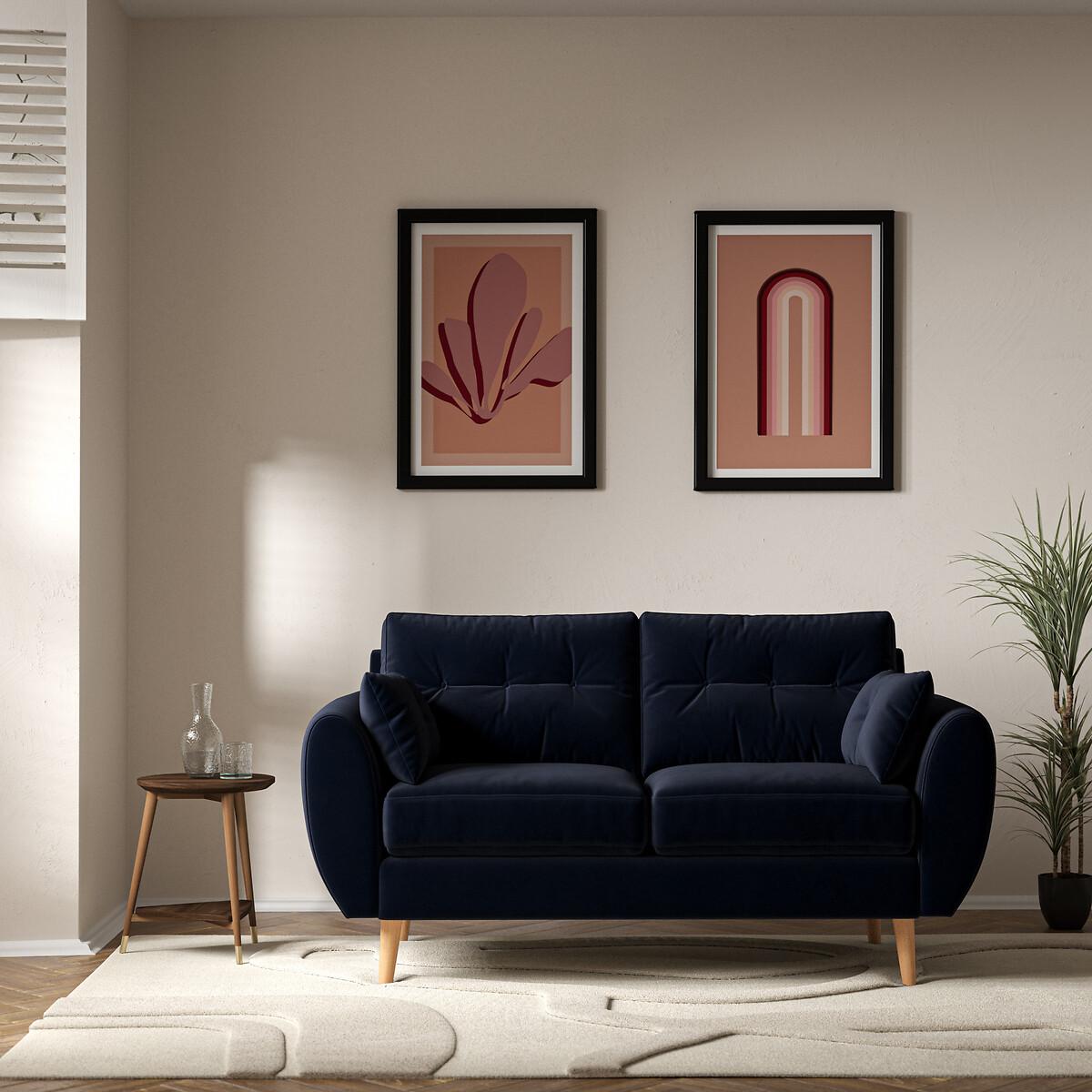 Mid-century design meets maximum comfort. A classic buttoned back is paired with a beautiful elliptical arm shape, creating the perfect modern retro look. Plump side cushions add extra cosiness, whereas foam and fibre fillings ensure this sofa keeps its shape without compromising on comfort. Scandi-style splayed legs, are the ideal partner to Ada's clean curved design. Choose from our soft brushed fabric for ultimate cosiness, soft woven for a textured look or velvet for luxe living. The Ada is available in several sizes, including an armchair, snuggle chair, 2 seater, 3 seater and corner sofa. The Ada is also available with a plain back. Product details• Velvet - An elegant velvet with a dense and matte finish, perfect for those wanting a rich and luxurious look. A flat finish pile makes it difficult for the material to snag – ideal if you live with pets and sure to prove durable for years to come. Check it's right for you - order a FREE swatch above.• Created with medium density foam fillings for a sofa with a level of comfort suitable for most. • Foam filled seats provide great support without compromising on comfort, and require little maintenance to keep their shape, ensuring your sofa looks as good as it does the day you welcomed it into your living room.• Fibre backs provide extra softness and give you that "sink in" feeling.• Two rectangular scatter cushions included for extra arm comfort.• Just flip to freshen up - both the seat cushions and back cushions are fully reversible so it's easy to keep your sofa looking its best.• Seat covers are removal (zip fastening). Back covers not removable due to button finishes. • FSC® solid beech hardwood frame - made of wood from responsibly managed forests that provide environmental, social and economic benefits.• Tapered feet crafted entirely from solid wood ensure durability and stability.• Removable feet.• Lovingly handmade in the UK.All our made to order sofas are carefully manufactured in the UK.Each hardwood frame is dowelled, glued, and screwed before being paired with the finest fabrics and fillings. And it doesn't stop there - for customer peace of mind and safety, all frames and fabrics are rigorously examined, inspected, and tested to the highest standards. All filling material(s) and covering fabric(s) meet the requirements for resistance to cigarette and match ignition in the 1988 safety regulations. This sofa comes with a 3 year manufacturer warranty from date of delivery (subject to terms and conditions)Product composition• Fabric - Velvet (100% polyester)• Seat Fillings - Foam and fibre• Back Fillings - Fibre• Frame - Beech Hardwood (FSC), OSB (UK origin, FSC)• Feet - Solid Wood. Product Dimensions Overall width: 165 cm. Overall depth: 90 cm. Overall height: 88 cm. Seat height: 48 cm. Seat depth: 53 cm. Seat width between the arms: 130 cm. Back height (from base): 70 cm. Back height (from seat): 45 cm. Arm height (from floor): 66 cm. Arm height (from seat): 21 cm Clearance to floor (leg height): 18 cm. Small scatter cushions x 2: L55 cm x W30 cm. Please remember to measure your available space before ordering to be sure your sofa will fit. Don't forget to measure accessways and corners, and consider any obstacles. Package DimensionsL17. 1 cm x W92 cm x H91 cm, Weight 49 kg. This product will be dispatched by one of our trusted suppliers. You’ll be contacted by their selected courier about your delivery. Your product will be delivered to your room of choice. Feet may be assembled on arrival. BELFI01