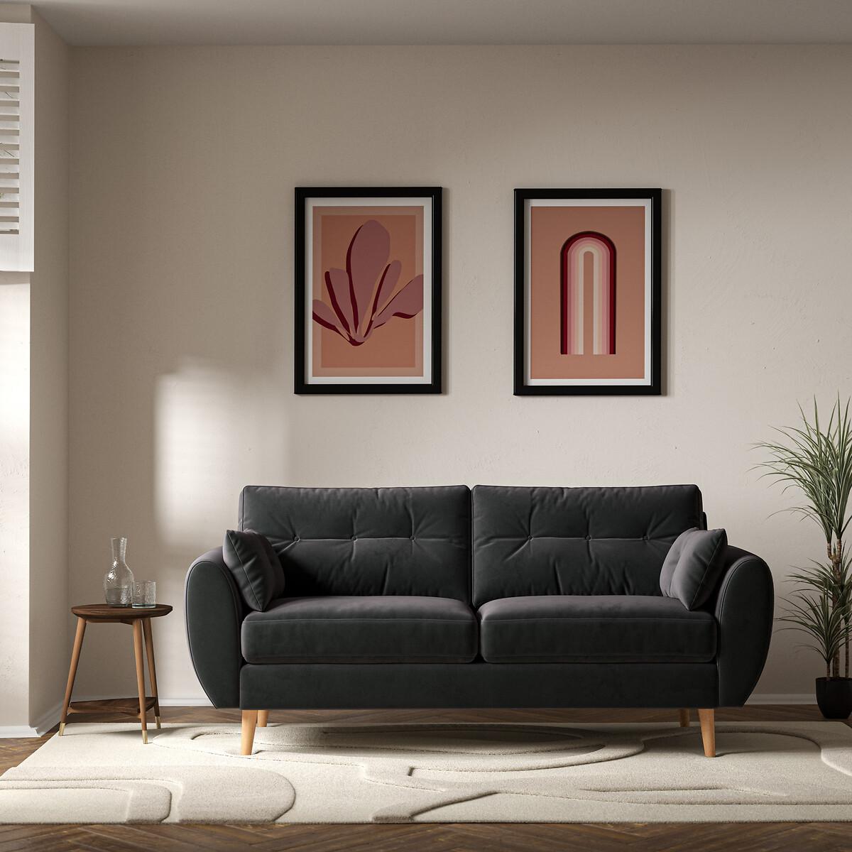 Mid-century design meets maximum comfort. A classic buttoned back is paired with a beautiful elliptical arm shape, creating the perfect modern retro look. Plump side cushions add extra cosiness, whereas foam and fibre fillings ensure this sofa keeps its shape without compromising on comfort. Scandi-style splayed legs, are the ideal partner to Ada's clean curved design. Choose from our soft brushed fabric for ultimate cosiness, soft woven for a textured look or velvet for luxe living. The Ada is available in several sizes, including an armchair, snuggle chair, 2 seater, 3 seater and corner sofa. The Ada is also available with a plain back. Product details• Velvet - An elegant velvet with a dense and matte finish, perfect for those wanting a rich and luxurious look. A flat finish pile makes it difficult for the material to snag – ideal if you live with pets and sure to prove durable for years to come. Check it's right for you - order a FREE swatch above.• Created with medium density foam fillings for a sofa with a level of comfort suitable for most. • Foam filled seats provide great support without compromising on comfort, and require little maintenance to keep their shape, ensuring your sofa looks as good as it does the day you welcomed it into your living room.• Fibre backs provide extra softness and give you that "sink in" feeling.• Two rectangular scatter cushions included for extra arm comfort.• Just flip to freshen up - both the seat cushions and back cushions are fully reversible so it's easy to keep your sofa looking its best.• Seat covers are removal (zip fastening). Back covers not removable due to button finishes. • FSC® solid beech hardwood frame - made of wood from responsibly managed forests that provide environmental, social and economic benefits.• Tapered feet crafted entirely from solid wood ensure durability and stability.• Removable feet.• Lovingly handmade in the UK.All our made to order sofas are carefully manufactured in the UK.Each hardwood frame is dowelled, glued, and screwed before being paired with the finest fabrics and fillings. And it doesn't stop there - for customer peace of mind and safety, all frames and fabrics are rigorously examined, inspected, and tested to the highest standards. All filling material(s) and covering fabric(s) meet the requirements for resistance to cigarette and match ignition in the 1988 safety regulations. This sofa comes with a 3 year manufacturer warranty from date of delivery (subject to terms and conditions)Product composition• Fabric - Velvet (100% polyester)• Seat Fillings - Foam and fibre• Back Fillings - Fibre• Frame - Beech Hardwood (FSC), OSB (UK origin, FSC)• Feet - Solid Wood. Product Dimensions Overall width: 190 cm. Overall depth: 90 cm. Overall height: 88 cm. Seat height: 48 cm. Seat depth: 53 cm. Seat width between the arms: 155 cm. Back height (from base): 70 cm. Back height (from seat): 45 cm. Arm height (from floor): 66 cm. Arm height (from seat): 21 cm Clearance to floor (leg height): 18 cm. Small scatter cushions x 2: L55 cm x W30 cm. Please remember to measure your available space before ordering to be sure your sofa will fit. Don't forget to measure accessways and corners, and consider any obstacles. Package DimensionsL19. 8 cm x W92 cm x H91 cm, Weight 55 kg. This product will be dispatched by one of our trusted suppliers. You’ll be contacted by their selected courier about your delivery. Your product will be delivered to your room of choice. Feet may be assembled on arrival. BELFI01