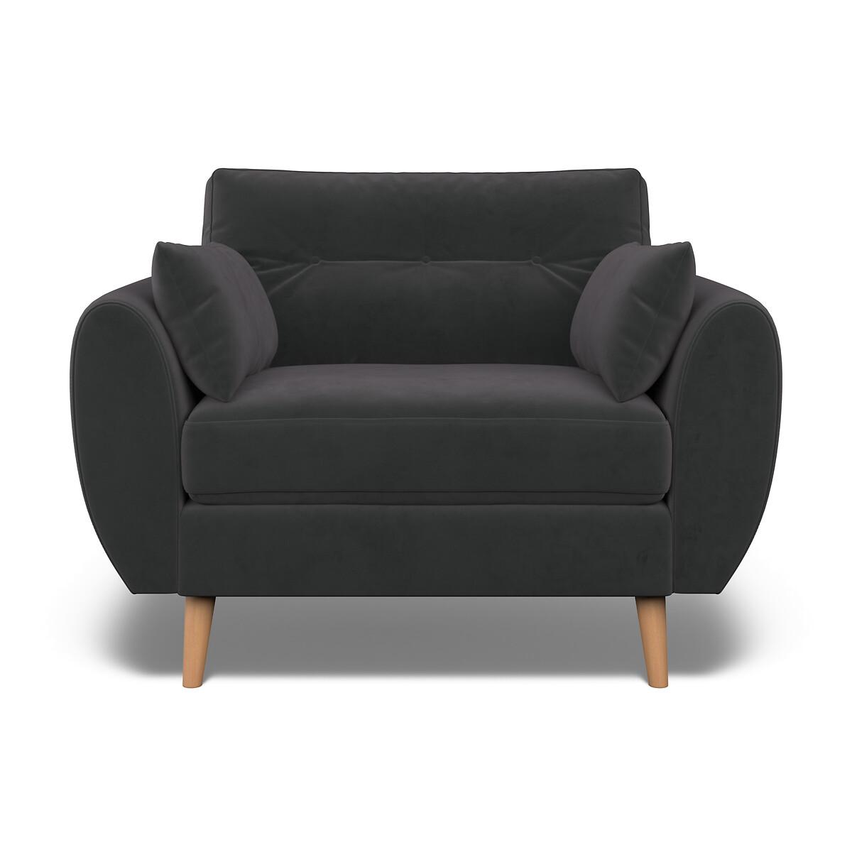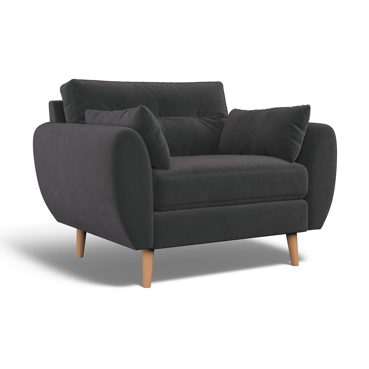 Meet the Ada snuggle chair - deliciously spacious for one, or perfect for cuddles. Mid-century design meets maximum comfort. A classic buttoned back is paired with a beautiful elliptical arm shape, creating the perfect modern retro look. Plump side cushions add extra cosiness, whereas foam and fibre fillings ensure this sofa keeps its shape without compromising on comfort. Scandi-style splayed legs, are the ideal partner to Ada's clean curved design. Choose from our soft brushed fabric for ultimate cosiness, soft woven for a textured look or velvet for luxe living. The Ada is available in several sizes, including an armchair, snuggle chair, 2 seater, 3 seater and corner sofa. The Ada is also available with a plain back. Product details• Velvet - An elegant velvet with a dense and matte finish, perfect for those wanting a rich and luxurious look. A flat finish pile makes it difficult for the material to snag – ideal if you live with pets and sure to prove durable for years to come. Check it's right for you - order a FREE swatch above.• Created with medium density foam fillings for a sofa with a level of comfort suitable for most. • Foam filled seats provide great support without compromising on comfort, and require little maintenance to keep their shape, ensuring your sofa looks as good as it does the day you welcomed it into your living room.• Fibre backs provide extra softness and give you that "sink in" feeling.• Two rectangular scatter cushions included for extra arm comfort.• Just flip to freshen up - both the seat cushions and back cushions are fully reversible so it's easy to keep your sofa looking its best.• Seat covers are removal (zip fastening). Back covers not removable due to button finishes. • FSC® solid beech hardwood frame - made of wood from responsibly managed forests that provide environmental, social and economic benefits.• Tapered feet crafted entirely from solid wood ensure durability and stability.• Removable feet.• Lovingly handmade in the UK.All our made to order sofas are carefully manufactured in the UK.Each hardwood frame is dowelled, glued, and screwed before being paired with the finest fabrics and fillings. And it doesn't stop there - for customer peace of mind and safety, all frames and fabrics are rigorously examined, inspected, and tested to the highest standards. All filling material(s) and covering fabric(s) meet the requirements for resistance to cigarette and match ignition in the 1988 safety regulations. This sofa comes with a 3 year manufacturer warranty from date of delivery (subject to terms and conditions)Product composition• Fabric - Velvet (100% polyester)• Seat Fillings - Foam and fibre• Back Fillings - Fibre• Frame - Beech Hardwood (FSC), OSB (UK origin, FSC)• Feet - Solid Wood. Product Dimensions Overall width: 120 cm. Overall depth: 90 cm. Overall height: 88 cm. Seat height: 48 cm. Seat depth: 53 cm. Seat width between the arms: 85 cm. Back height (from base): 70 cm. Back height (from seat): 45 cm. Arm height (from floor): 66 cm. Arm height (from seat): 21 cm Clearance to floor (leg height): 18 cm. Small scatter cushions x 2: L55 cm x W30 cm. Please remember to measure your available space before ordering to be sure your sofa will fit. Don't forget to measure accessways and corners, and consider any obstacles. Package DimensionsL12. 3 cm x W92 cm x H91 cm, Weight 37.5 kg. This product will be dispatched by one of our trusted suppliers. You’ll be contacted by their selected courier about your delivery. Your product will be delivered to your room of choice. Feet may be assembled on arrival. BELFI01