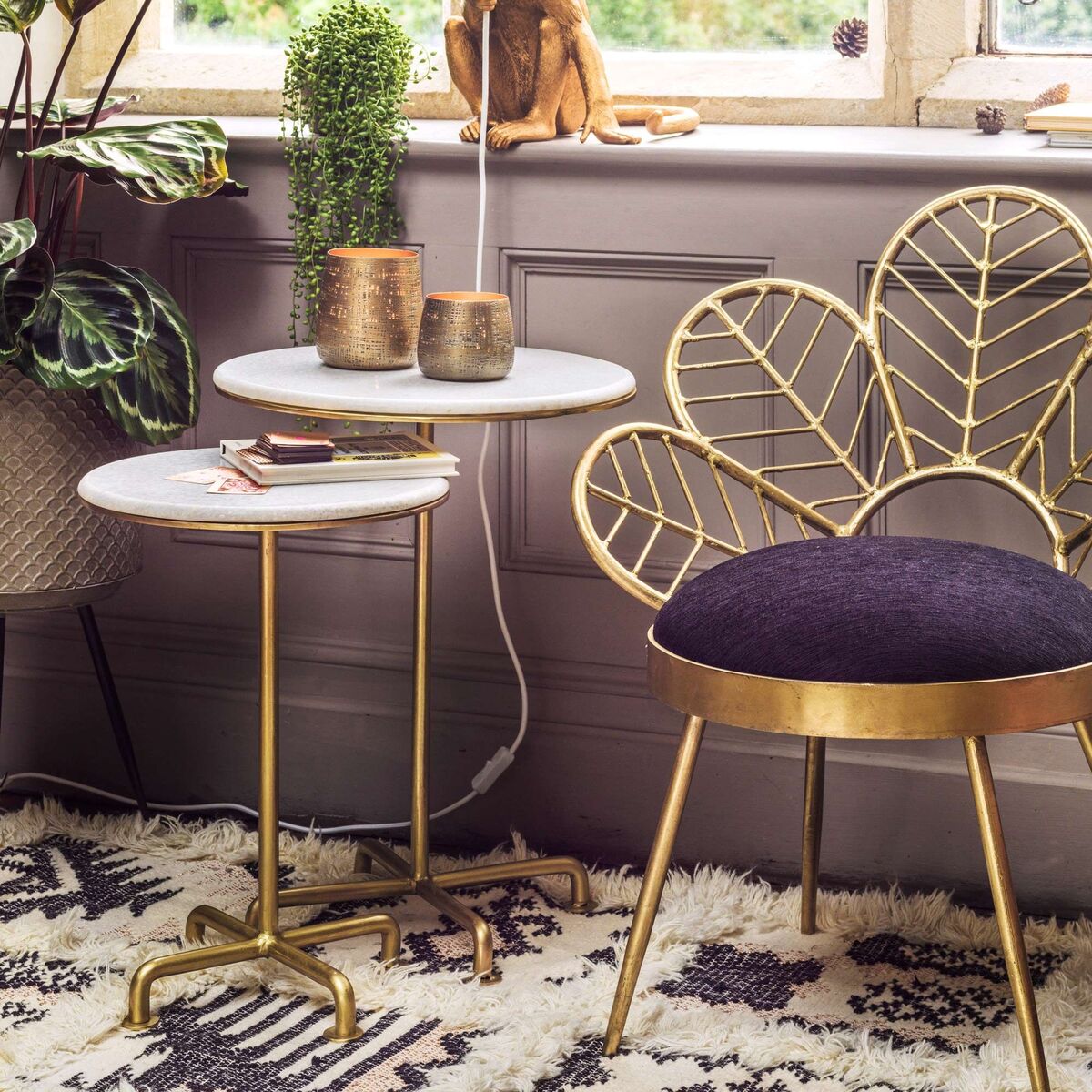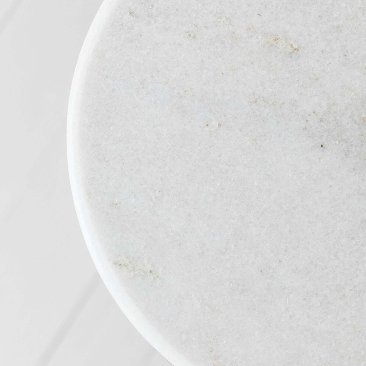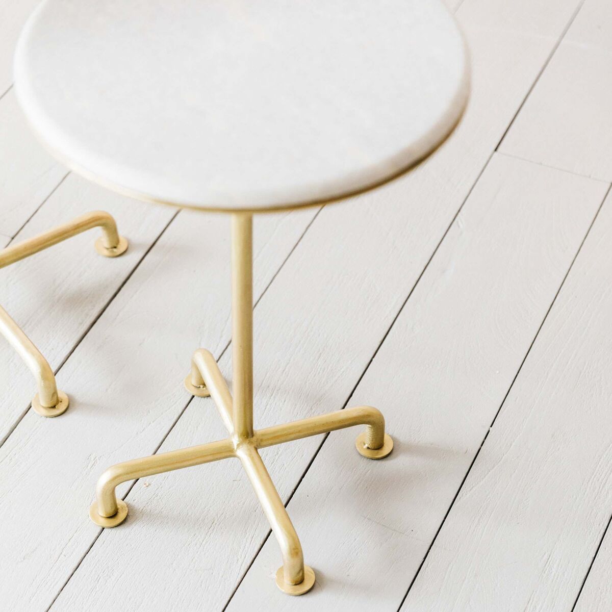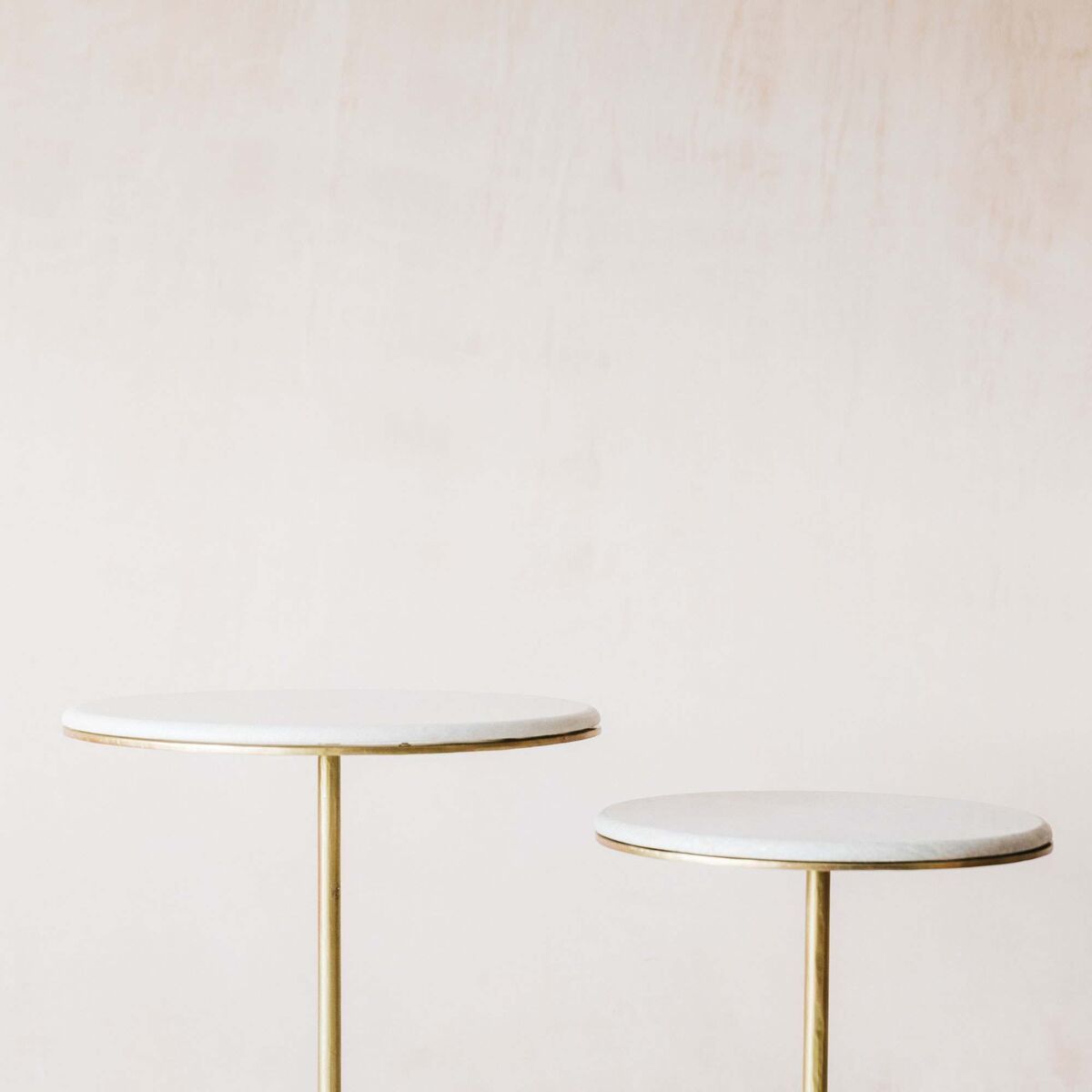 Featuring smooth, circular white marble tops and sleek iron stands with an opulent brass finish, our set of two Ada side tables will make an elegant and sophisticated addition to any living space.