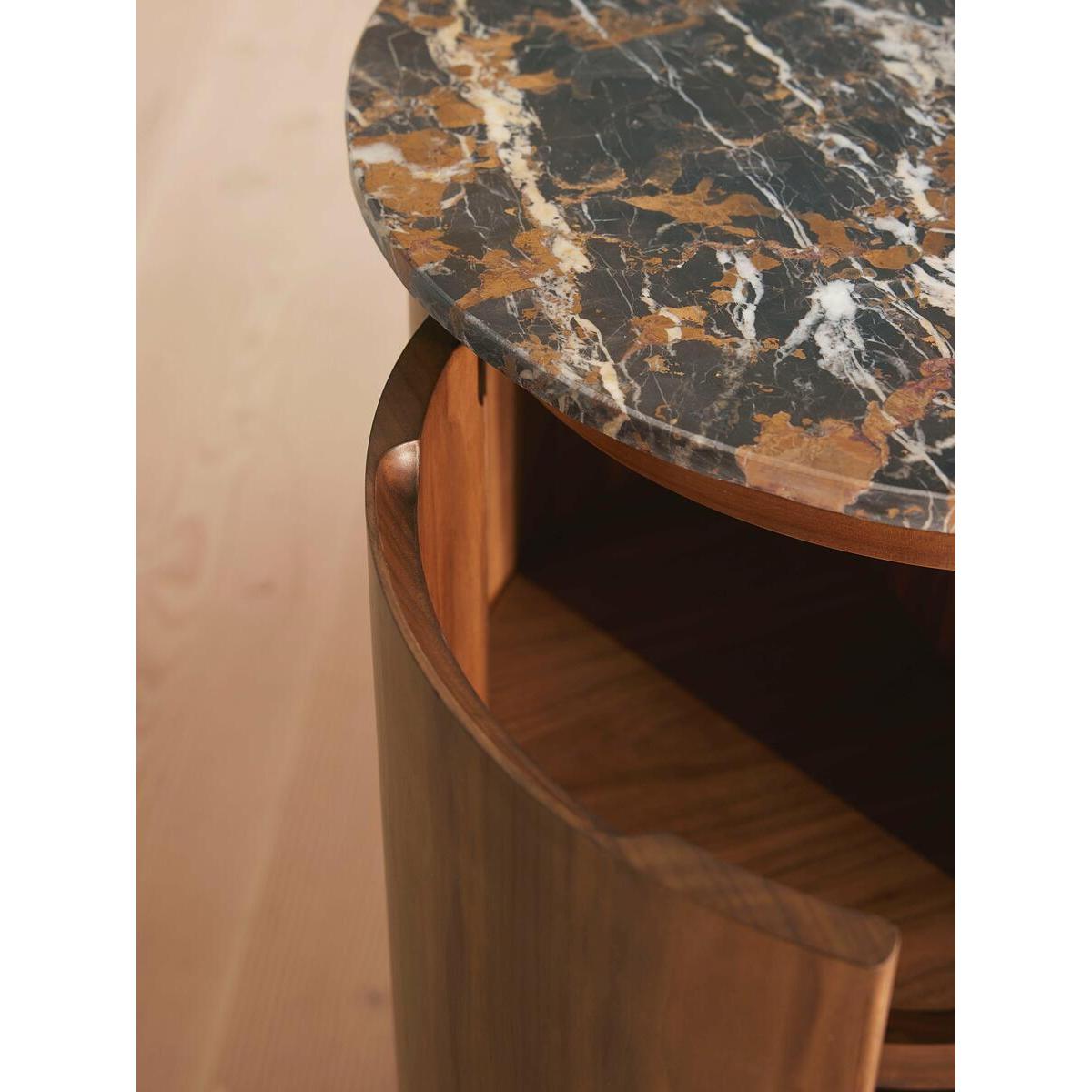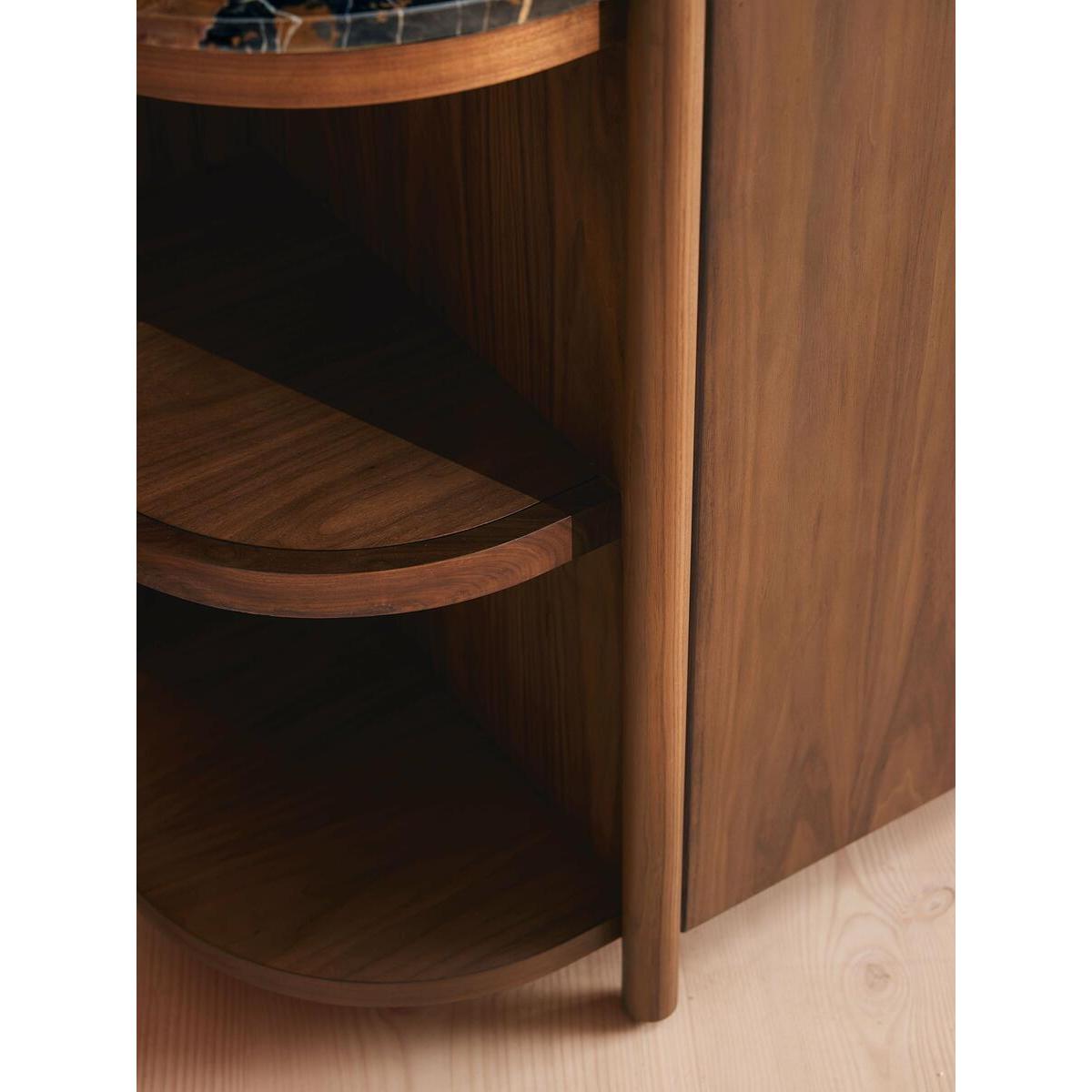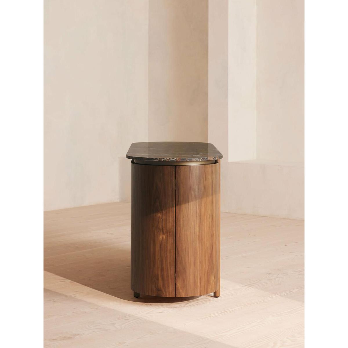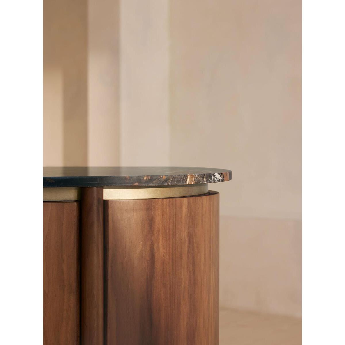 Our Ada sideboard contrasts dark walnut wood with a honed Michelangelo marble top. Sourced from Pakistan, this dramatic black and rust marble varies in characteristics, making no two designs the same. Antique brass finishes further elevate this piece, mirroring the interiors of Soho House Rome, while four soft-close doors and hidden recessed handles mean you can stow away your essentials in modern and functional style. Walnut wood sideboard Honed Michelangelo marble top Antique brass details Four soft-close doors Hidden recessed handles Inspired by Soho House Rome