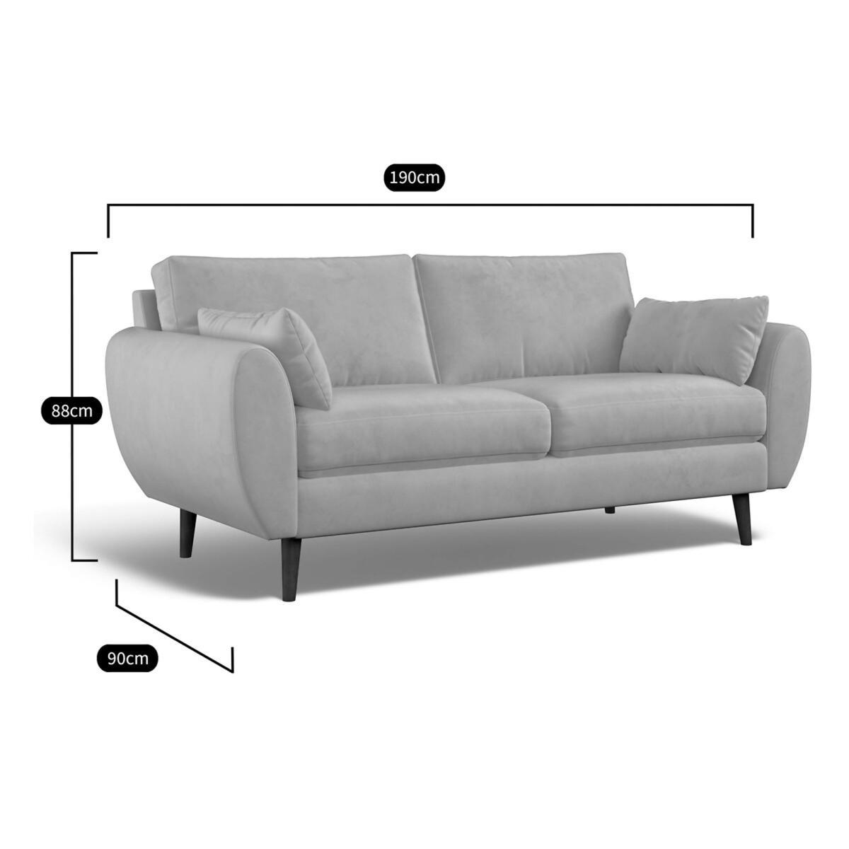 Ada Velvet 3 Seater Sofa with Light Wood Legs