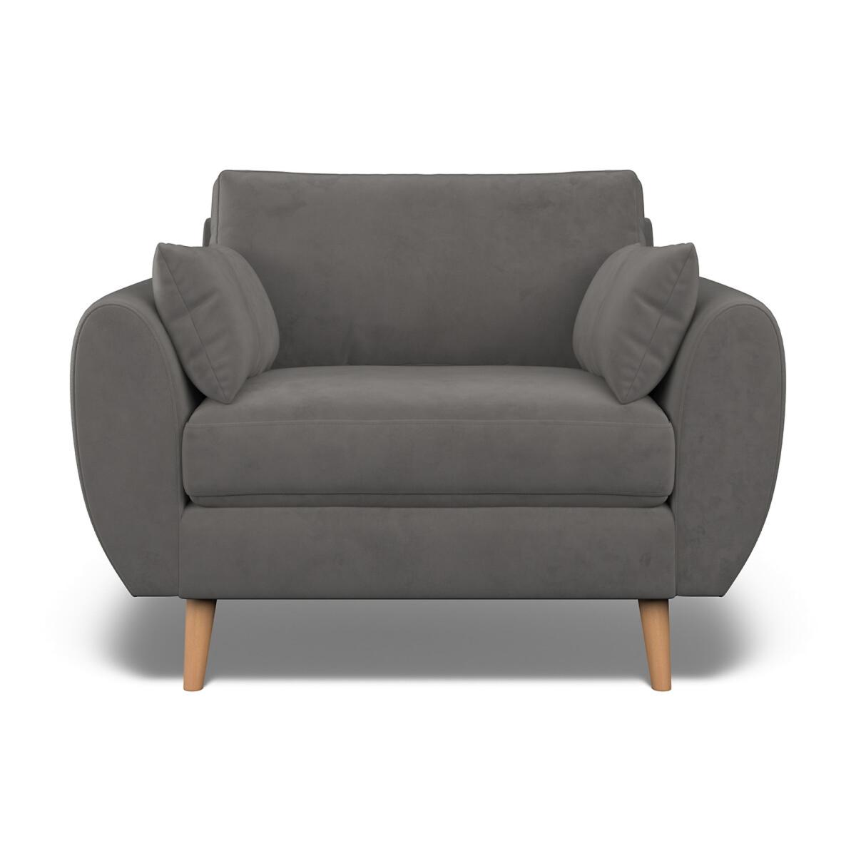 I love how the velvet snuggle chair combines a soft, tactile finish with a clean, compact profile - the pale wood legs give it an airy, raised look that works brilliantly in Scandi, mid-century or pared-back contemporary schemes. Its muted hue makes it a versatile anchor in a neutral palette or a subtle counterpoint in a richer-toned room. For styling, pair the snuggle chair with a textured wool throw in a contrasting shade and add a couple of geometric or subtly patterned cushions to break up the velvet. Position it by a slimline floor lamp and a simple side table to create a cosy reading corner, or use it as a standalone accent in a hallway or bedroom nook.