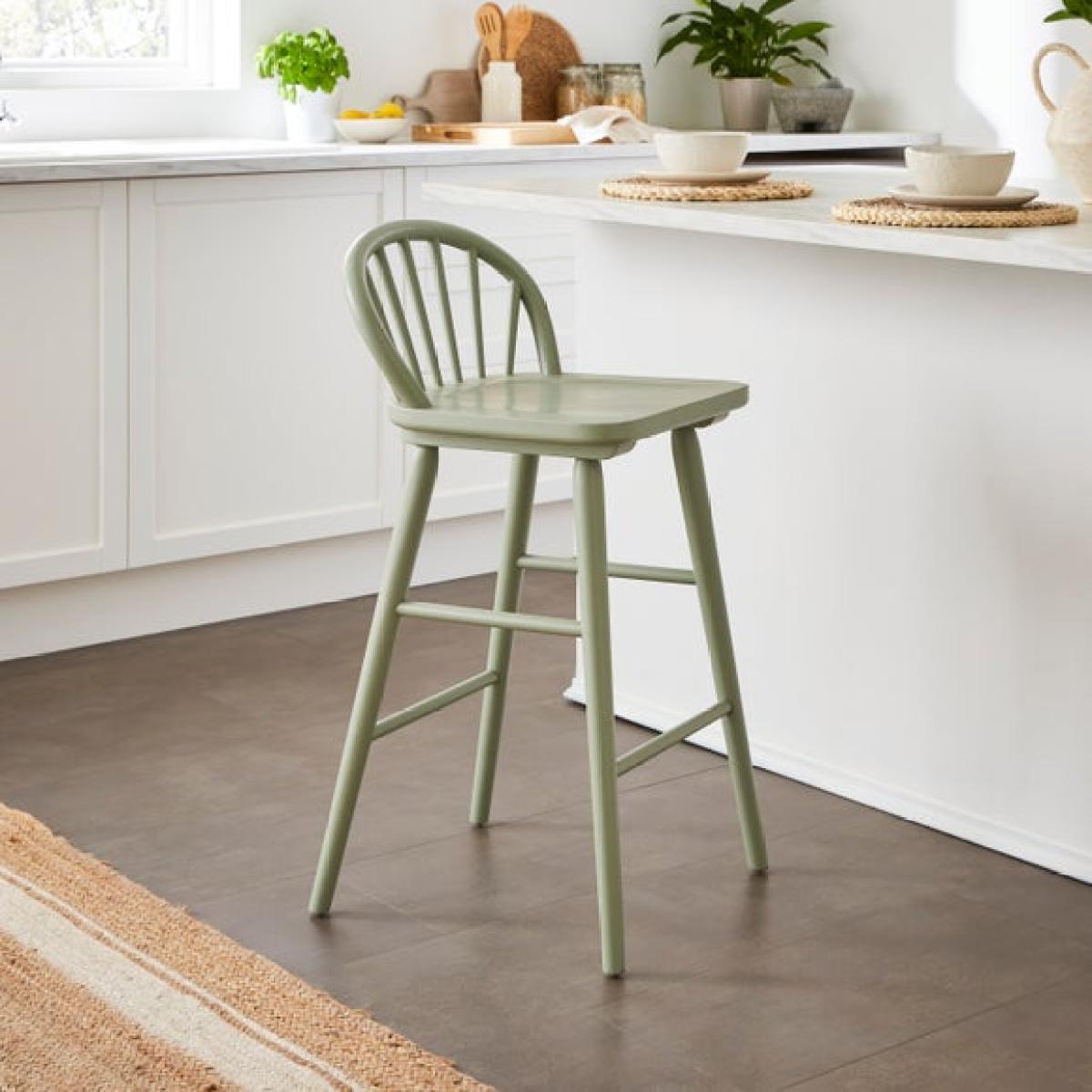 I really like this bar stool for its clean, classic design and versatile colour, which makes it suitable for various interior styles, from Scandi minimalism to rustic country kitchens. Its counter height makes it ideal for breakfast bars or kitchen islands, adding a relaxed yet functional touch. When styling, consider pairing it with a matching or contrasting bar table to create a cohesive look. It works particularly well in spaces that favour soft colours and natural textures, but can also be jazzed up with colourful cushions or throws for a more playful vibe. Practical tips include using it for casual dining or as extra seating in open-plan spaces, where its simple silhouette ensures it doesn't dominate the room.