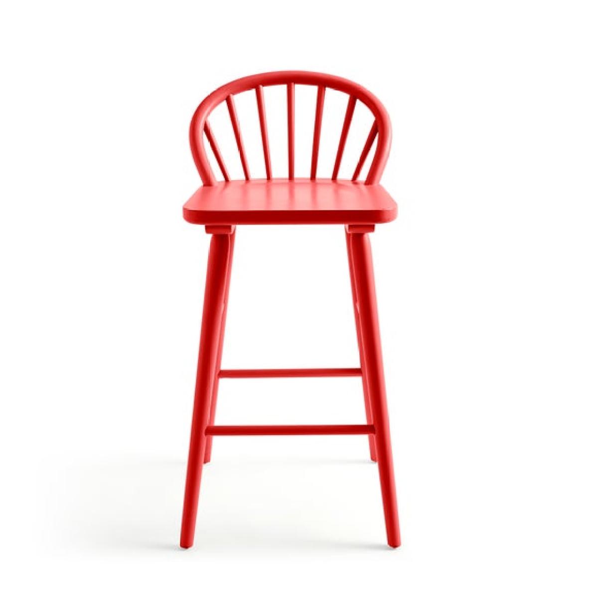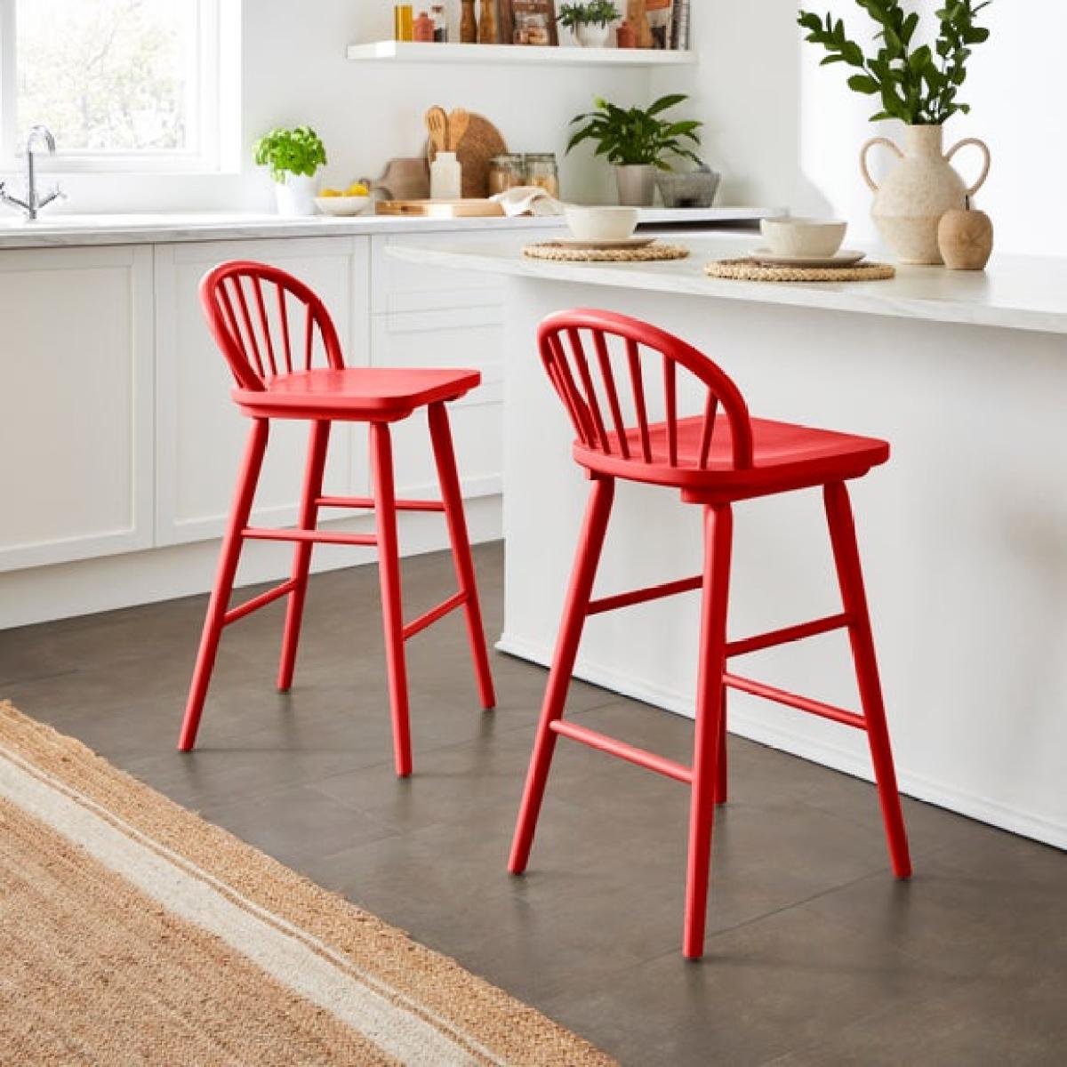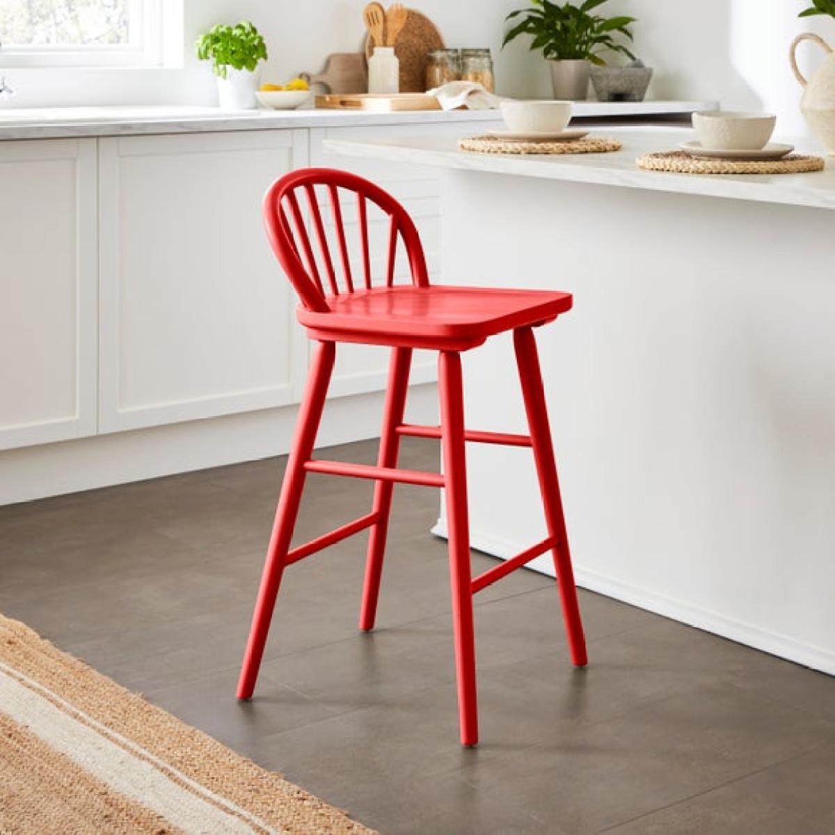 I love this barstool for its vibrant colour and classic silhouette, making it a versatile addition to both modern and traditional interiors. It works especially well in kitchens with a lively or eclectic style, adding a pop of colour wherever you choose to place it. Practical styling tips include pairing it with a matching or contrasting bar-height table for a cohesive look, or using it as an accent piece in a colourful dining nook. Its clean lines and sturdy frame also make it a functional choice for a casual eating space or a cheerful breakfast bar. To keep the look fresh, consider accessorising with cushions or seat pads in contrasting fabrics or patterns.