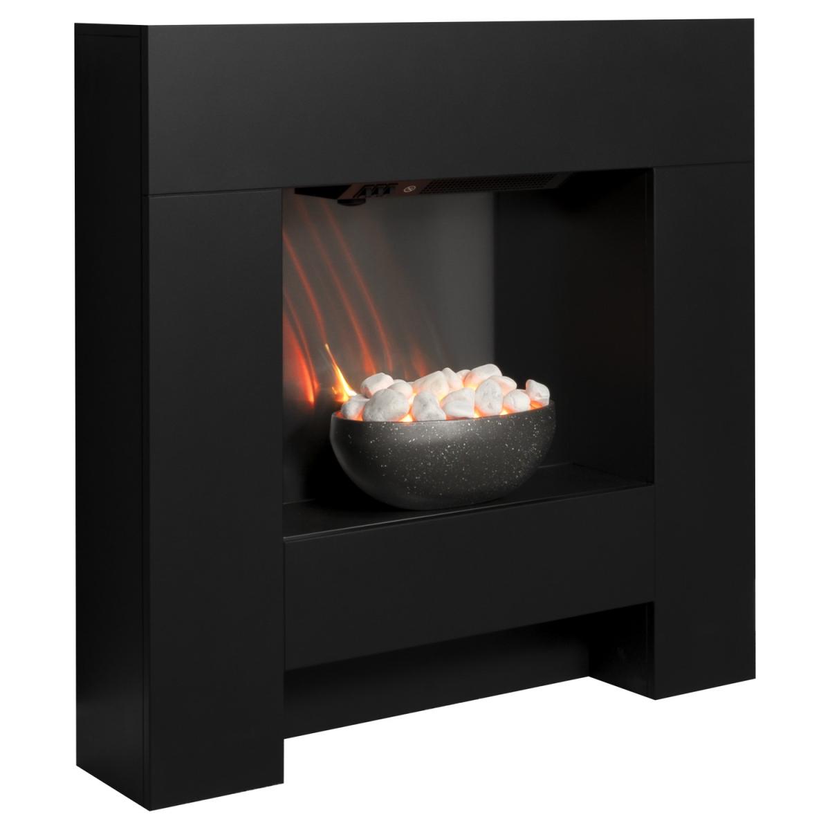 The Adam modern Cubist Black Electric Fireplace is a stylish piece that will bring in a trendy feel to any room. The Cubist has a real pebble fuel bed with an ambient LED glow effect that can be used with or without the heat.