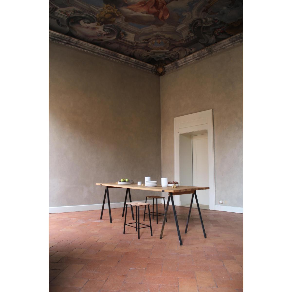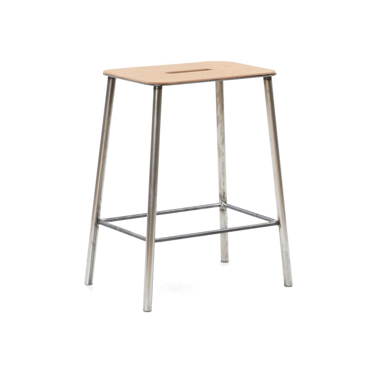 Created by Danish designer Toke Lauridsen, the Adam stool has become an iconic item of the Frama collection. Mixing industrial style and minimalist lines, Adam is inspired by the vintage workshop stool. It combines noble, highly resistant materials. The natural steel structure is fine and slender. It’s topped off by a thin seat in beige natural leather. This genuine, natural leather gains a patina over time, taking on a lustrous finish. So the more you use it, the better it gets! Adam is a simple, functional piece of furniture: the handle in its seat makes it easy to move around. The footrest bar ensures you are comfortable when seated. It is a solid, timeless stool that will never go out of fashion, a piece of furniture made to last and be handed down from generation to generation.