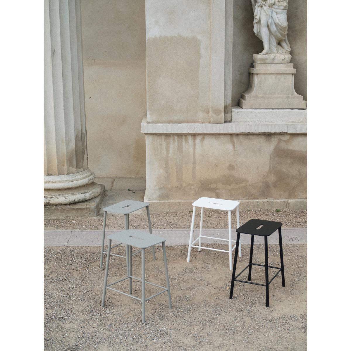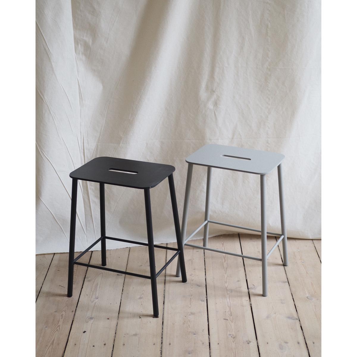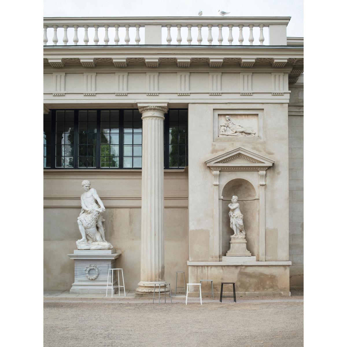 Created by Danish designer Toke Lauridsen, the Adam stool has become an iconic item of the Frama collection. Mixing industrial style and minimalist lines, Adam is inspired by the vintage workshop stool. It’s made of epoxy-lacquered steel, a waterproof, ultra-durable finish that means it can be used outdoors. The Adam stool has fine, slender lines. It’s a simple, functional piece of furniture: the handle in the seat allows easy handling and also serves as a drain hole for rainwater. The footrest bar ensures you are comfortable when seated. A solid, timeless piece of furniture that will never go out of fashion, this stool can be used inside or out, and is made to last and be handed down from generation to generation.