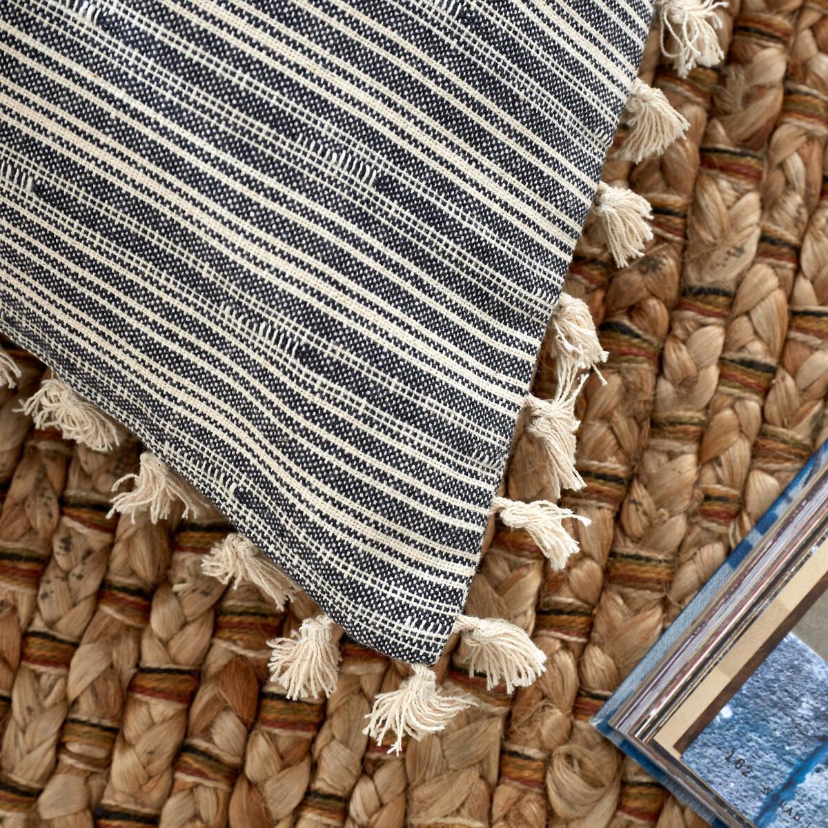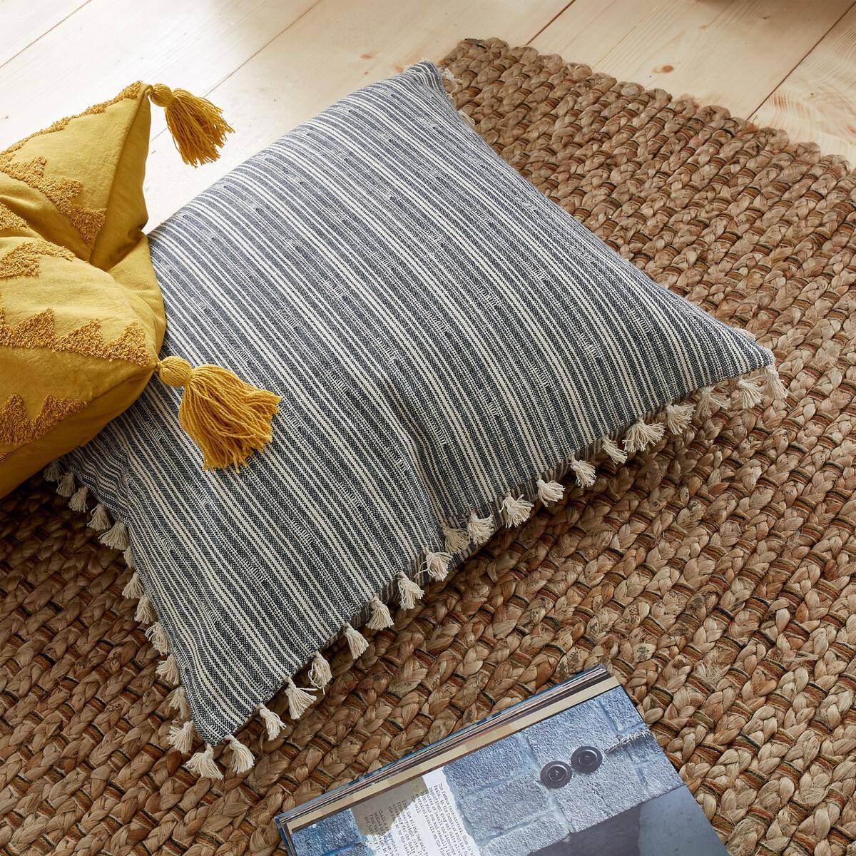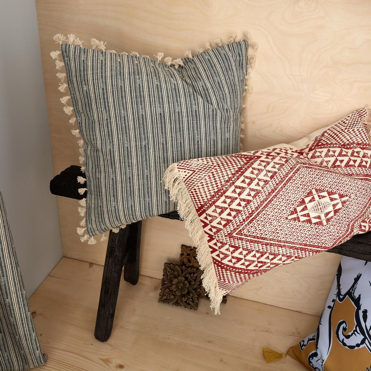This inspired collection of eclectic designs is a fusion of influences from across the world with a modern interpretation of artisan motifs and timeless textures. Add a hint of Mediterranean influence to your home with these textural striped slub cushion. Finished with a tasselled edge, this design will bring a worldly, well-travelled feel to your abode. This cushion has a 100% Polyester inner and a zipper fastening. Crafted from 100% Cotton. Machine Wash at 30 Degrees. This product will be dispatched by one of our trusted suppliers. You’ll be contacted by their selected courier about your delivery.