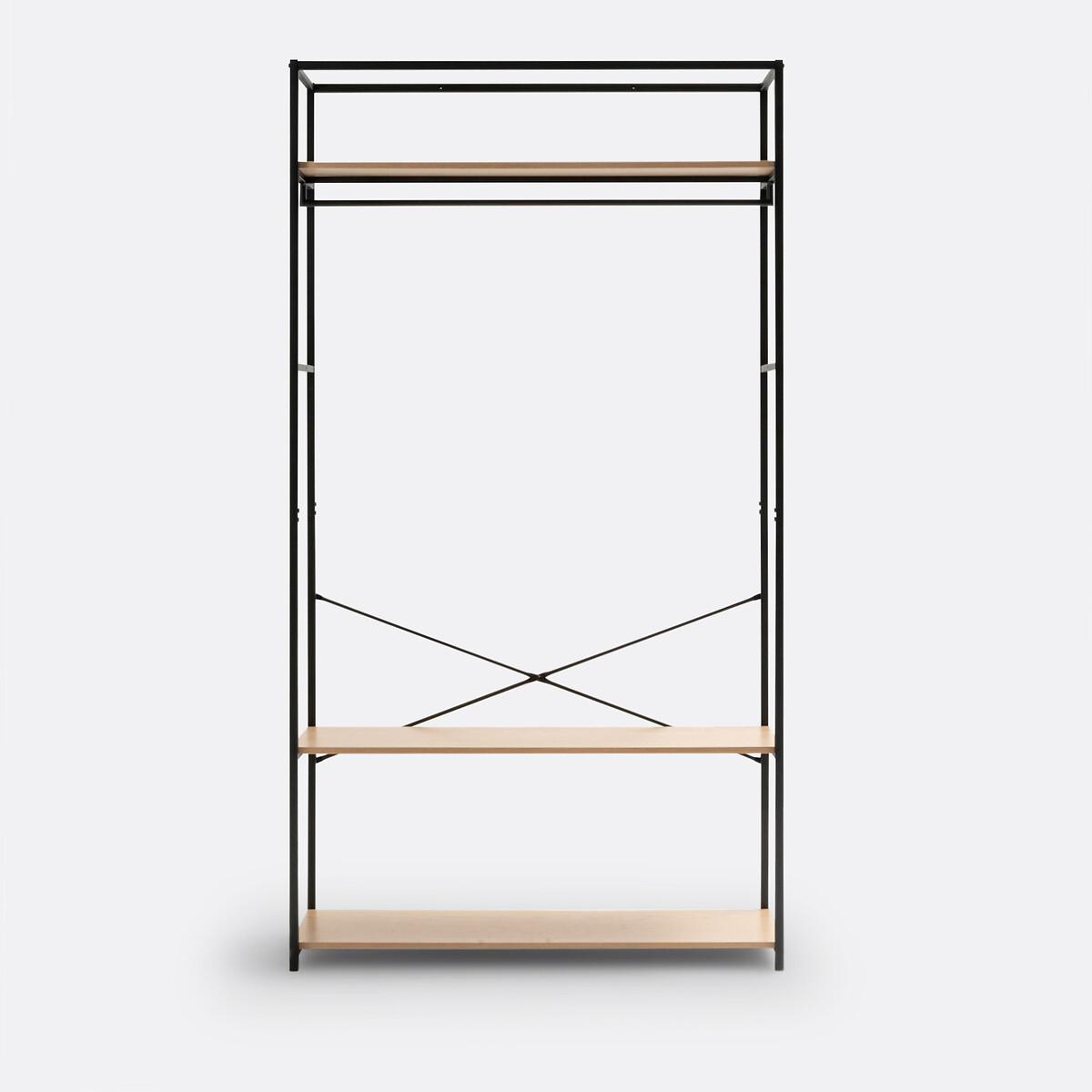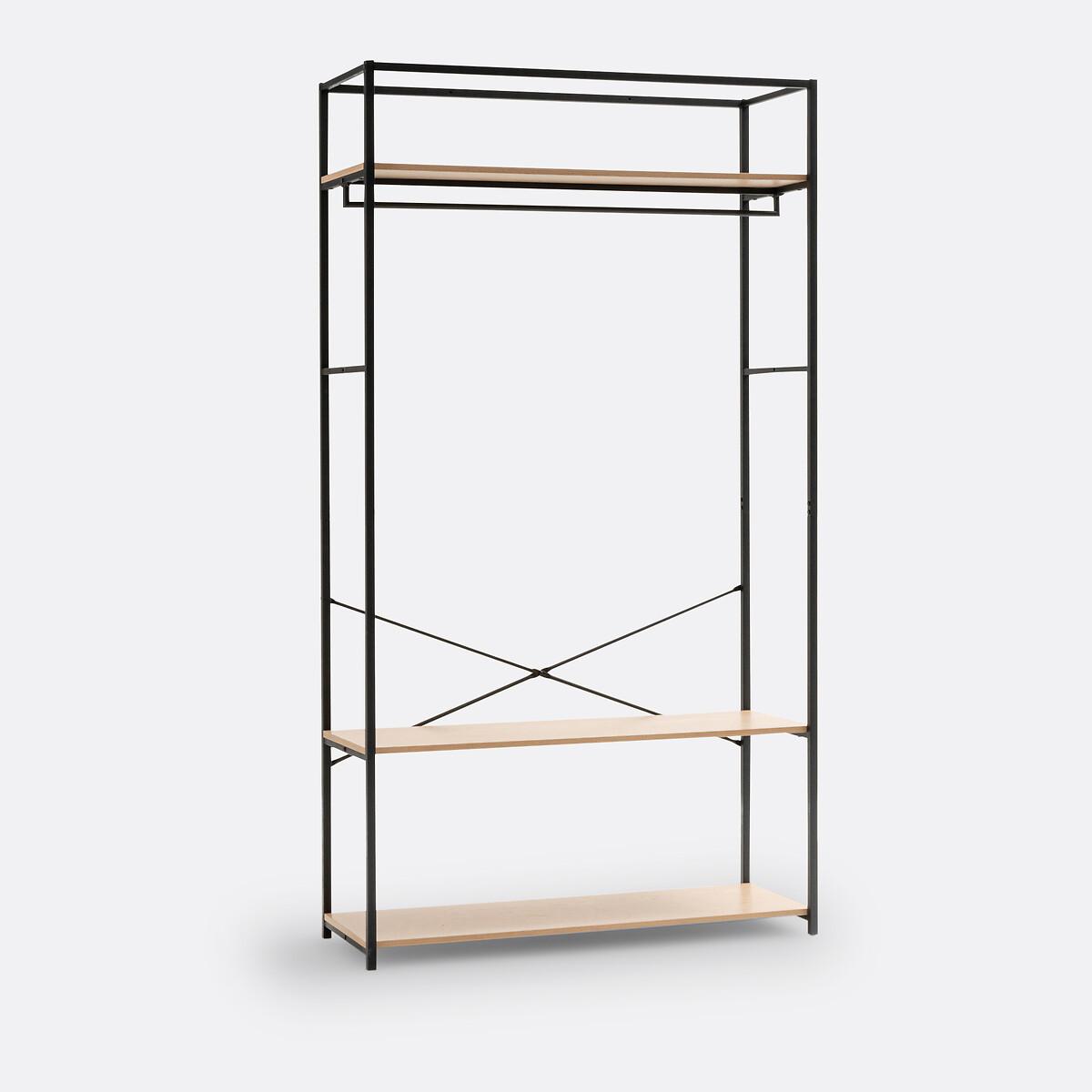 This wardrobe/hanging rail in wood and metal has a sleek and contemporary design. Ideal for small spaces, Adarbi offers its storage in its height. This dressing module offers 2 possible combinations with its hanging rail and 3 shelves.