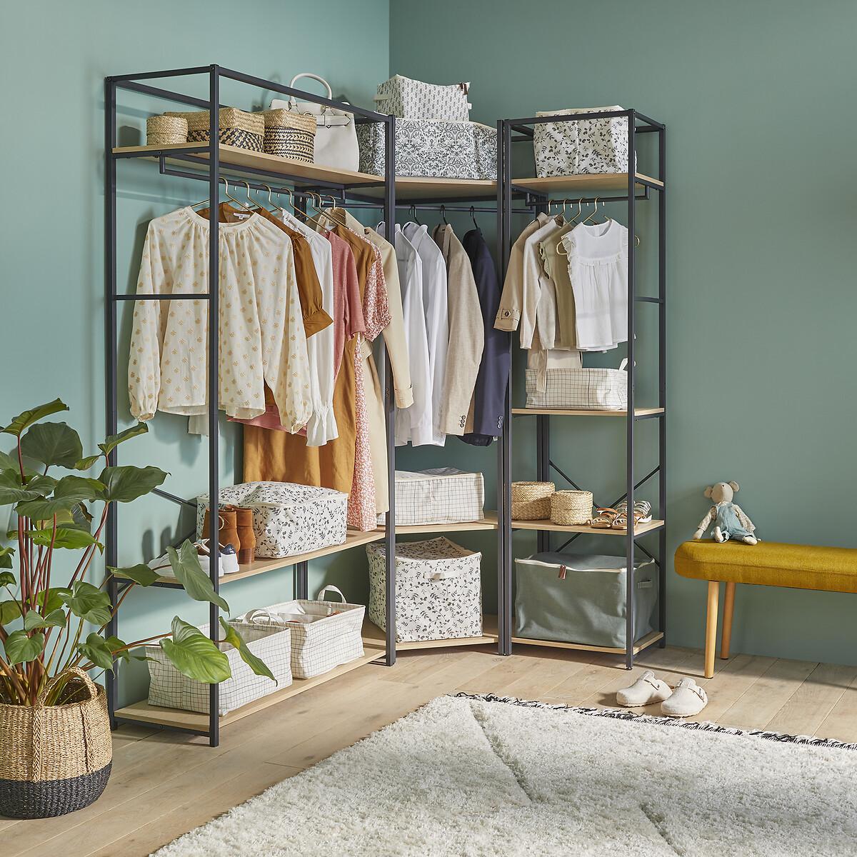 I love this piece because of its minimalist, versatile design that can work well in both modern and industrial interiors. The open-frame style offers an airy feel, making it ideal for smaller bedrooms or dressing areas where space is at a premium. It’s perfect for creating a streamlined wardrobe setup or for showcasing neatly folded clothes and accessories. Practical styling tips include pairing it with warm-toned or textured storage baskets on the shelves for added visual interest, and using the top rail for hanging frequently worn items. Its neutral colour palette allows it to seamlessly blend into various colour schemes, making it a smart, functional addition to many interiors.