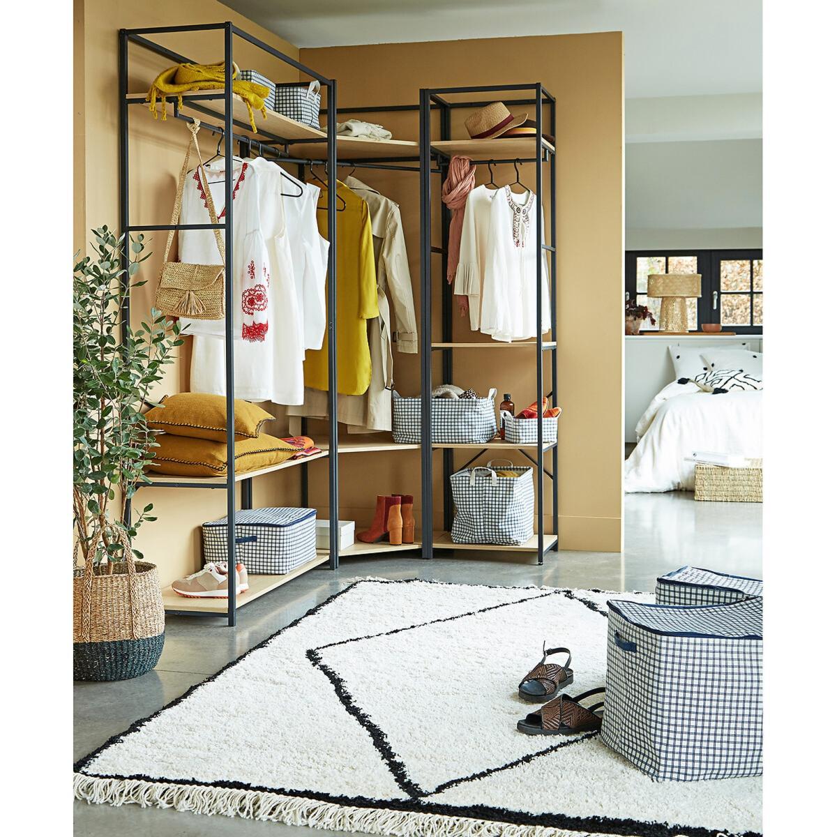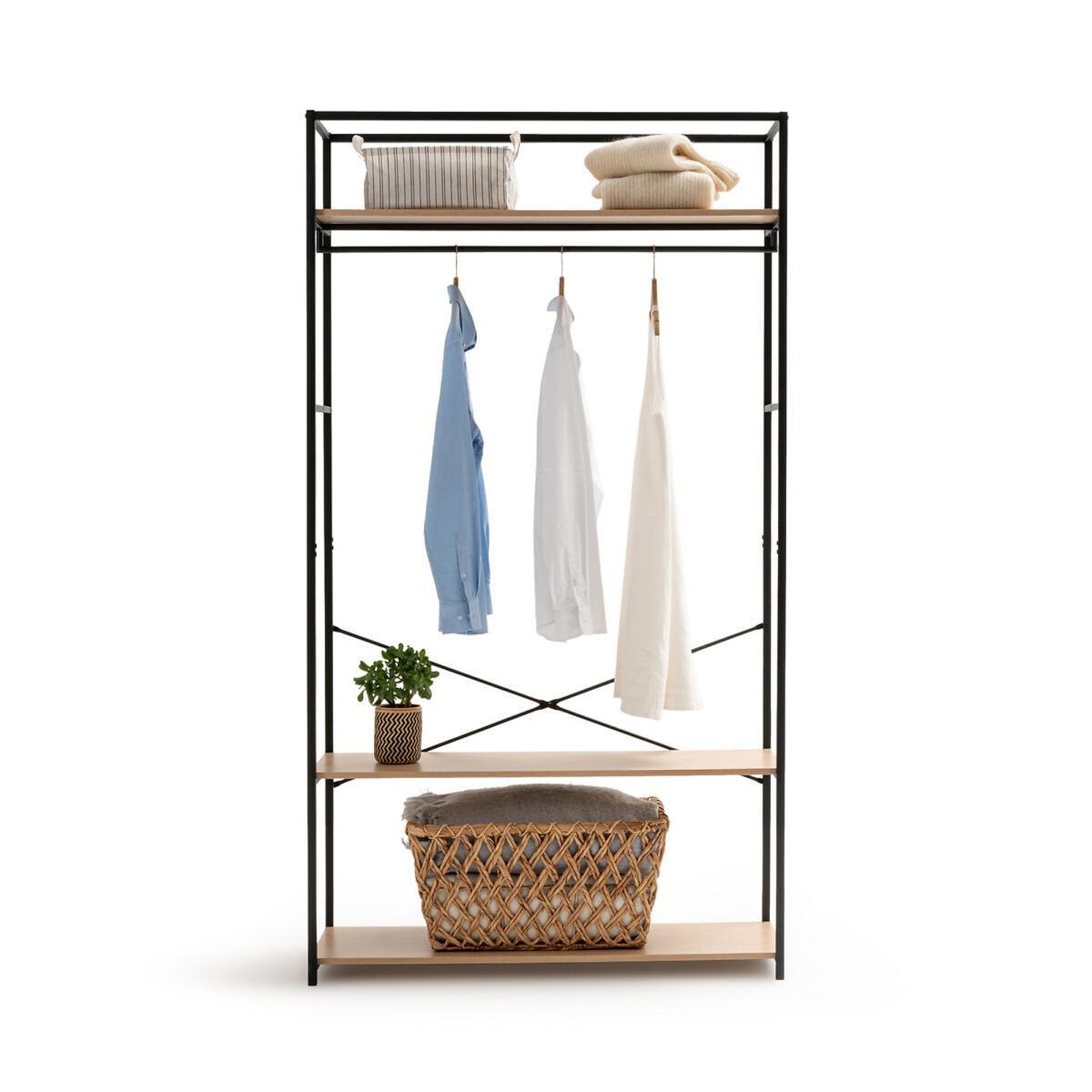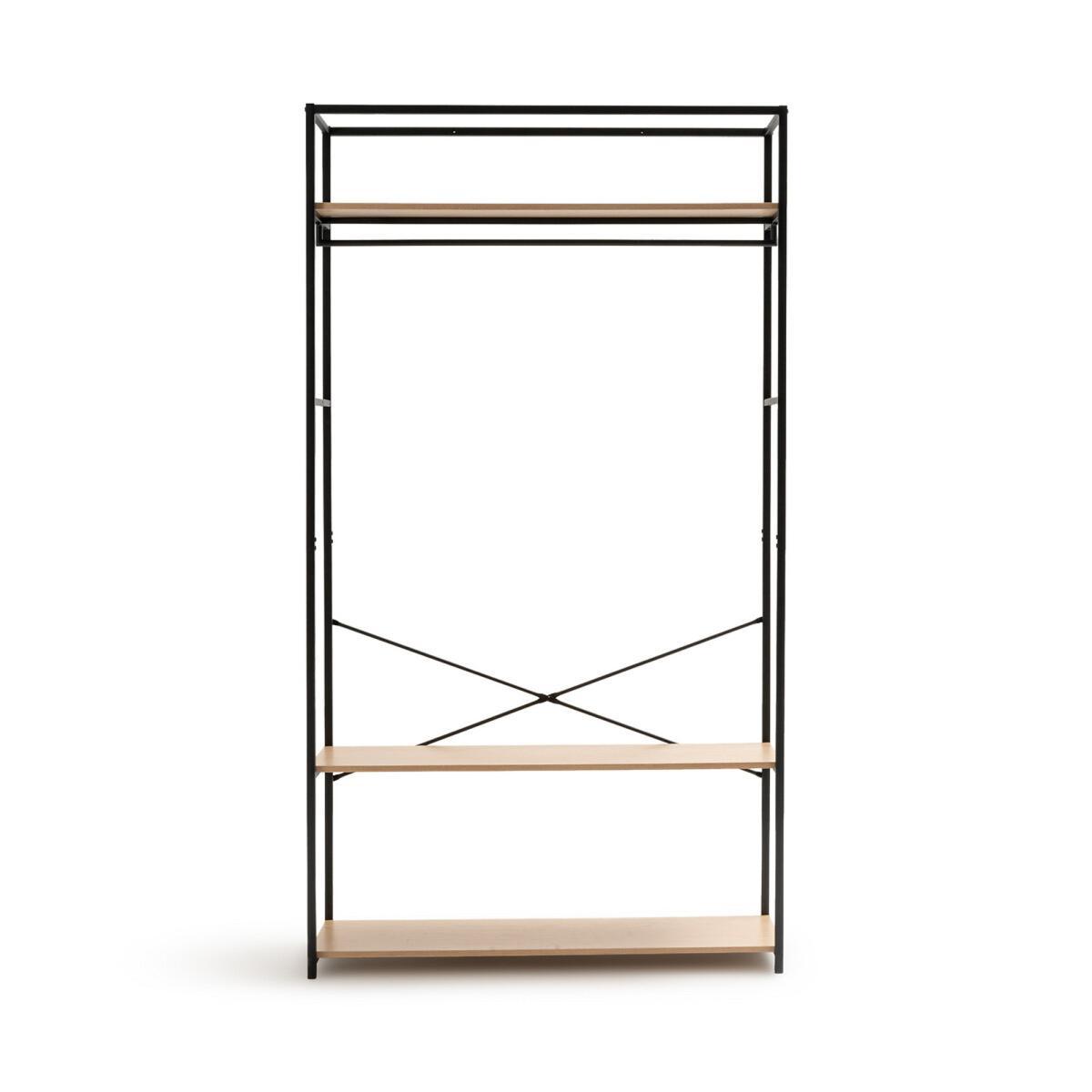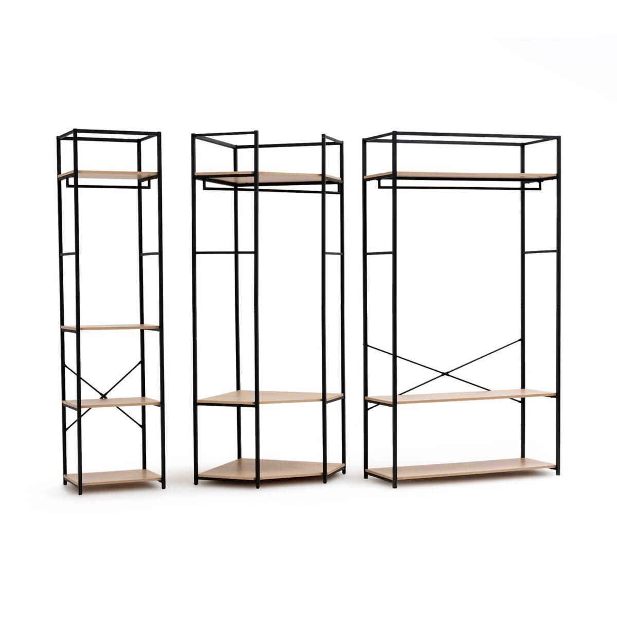 This wardrobe/hanging rail in wood and metal has a sleek and contemporary design. Ideal for small spaces, Adarbi offers its storage in its height. This dressing module offers 2 possible combinations with its hanging rail and 3 shelves.