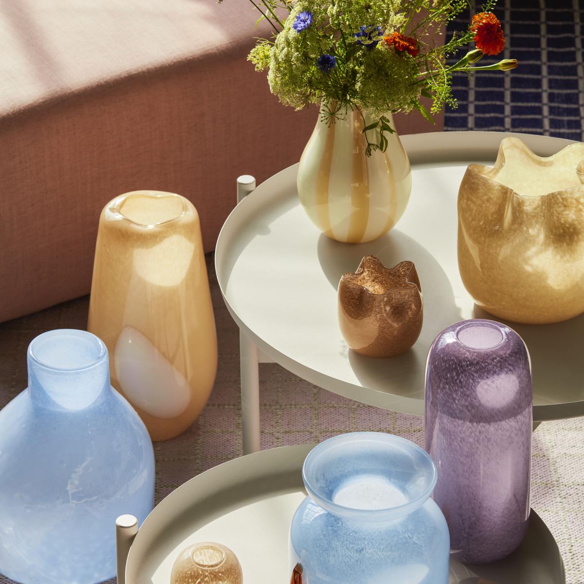 Danish brand Broste Copenhagen offers an attractive collection of mouth-blown glass Vases. The organic shapes and delicate patterns are an expression of the talent of the glass artisans. Swirling stripes, polka dots and opaque pastilles float on the surface of delicately shaded glass. This collection of Vases creates a soft, optimistic atmosphere in any room.