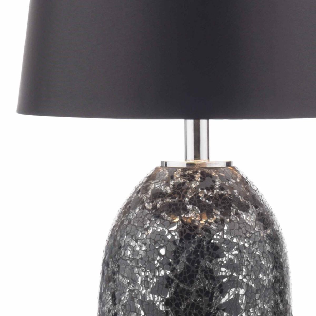 Stunning Black and silver mosaic table lamp complete with a black satin tapered shade. The Addax Table Lamp is a beautiful table lamp which reflects designer style and elegance, exclusive to Pagazzi. Boasting a glamorous black and silver mosaic effect base, this table lamp is complemented with a black satin, tapered light shade, lined with silver laminate. Perfect for dressing bedside tables or adding a stylish touch to living areas, this table lamp is set to be a showstopper. Pagazzi offers a range of LED bulbs up to 100w equivalent.