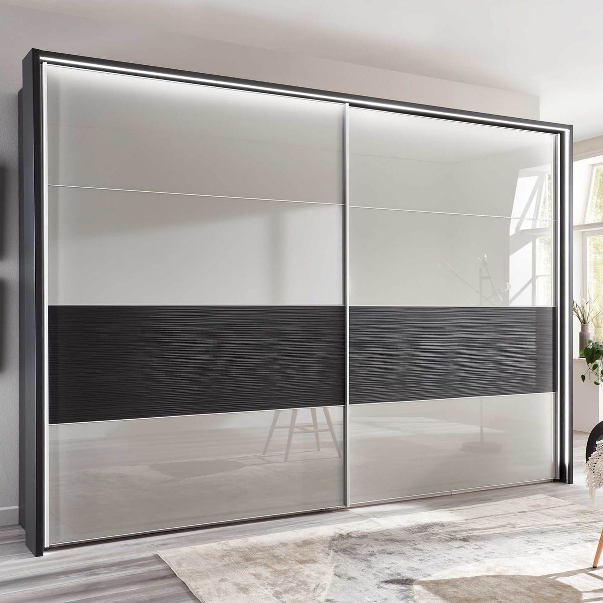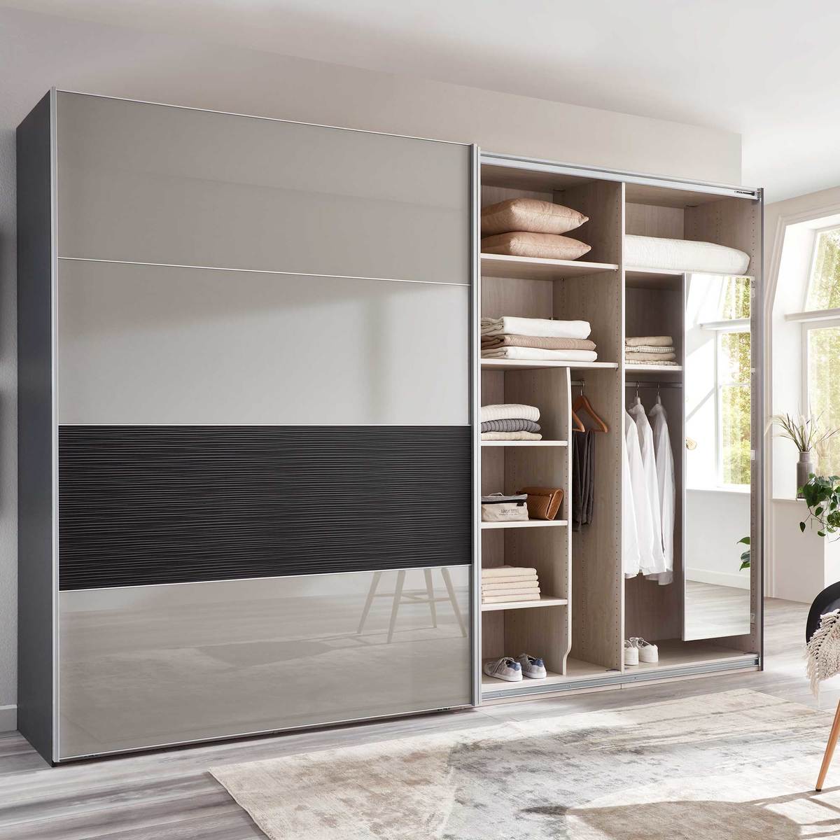 Adderstone 2 Door Sliding Wardrobe, Pebble Glass and Structure Graphite
