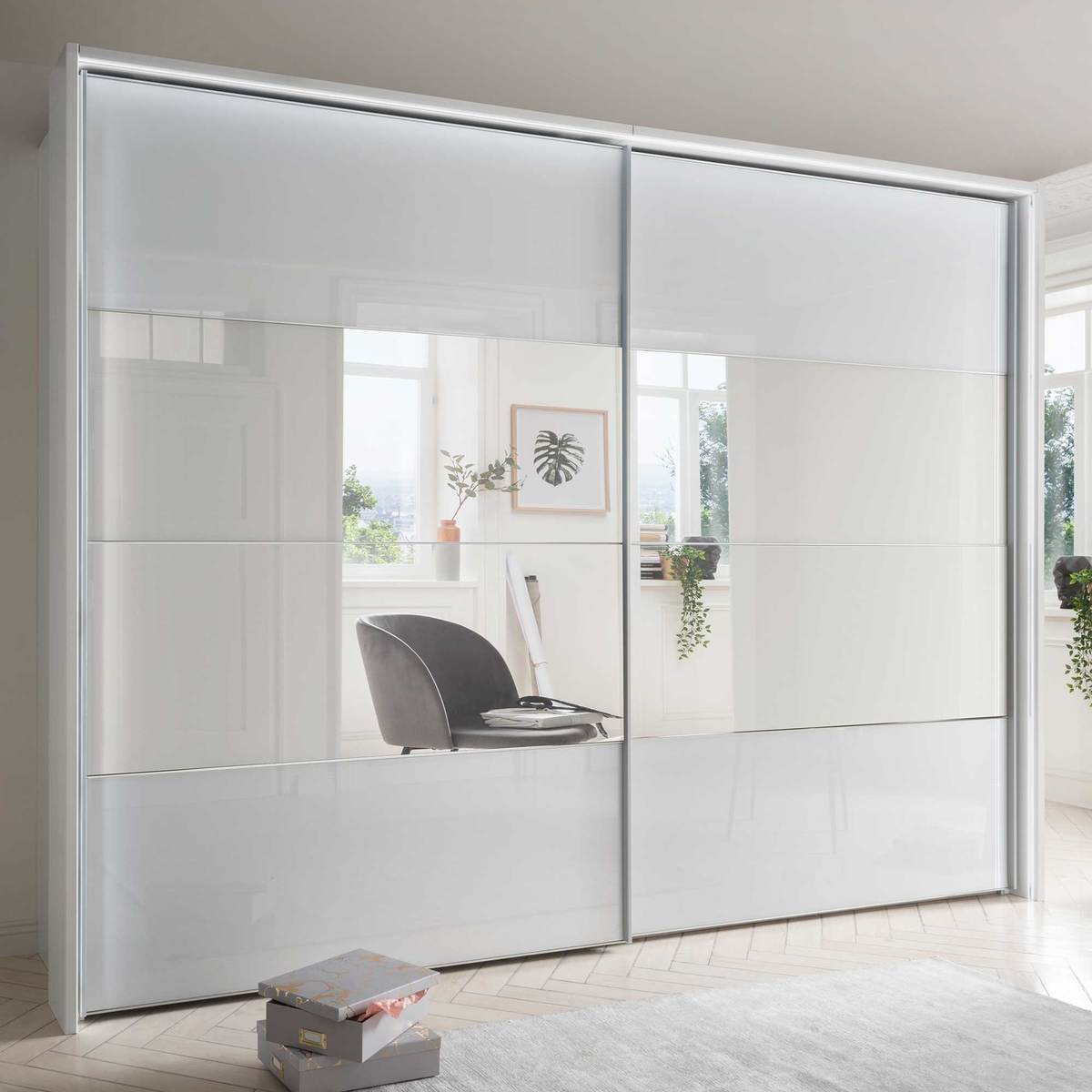 Adderstone 2 Door Sliding Wardrobe, White Glass and Mirror
