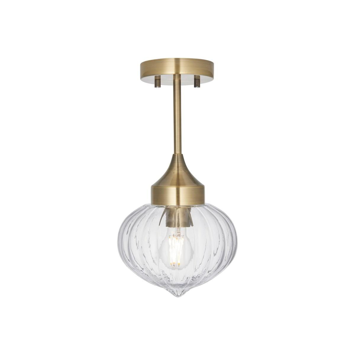 Stunning timeless flush light in antique brass plate to suit a wide range of interiors. The ribbed glass providing understated detail. Pair with an E27 LED bulb to create a beautiful ambience with dimmable function.