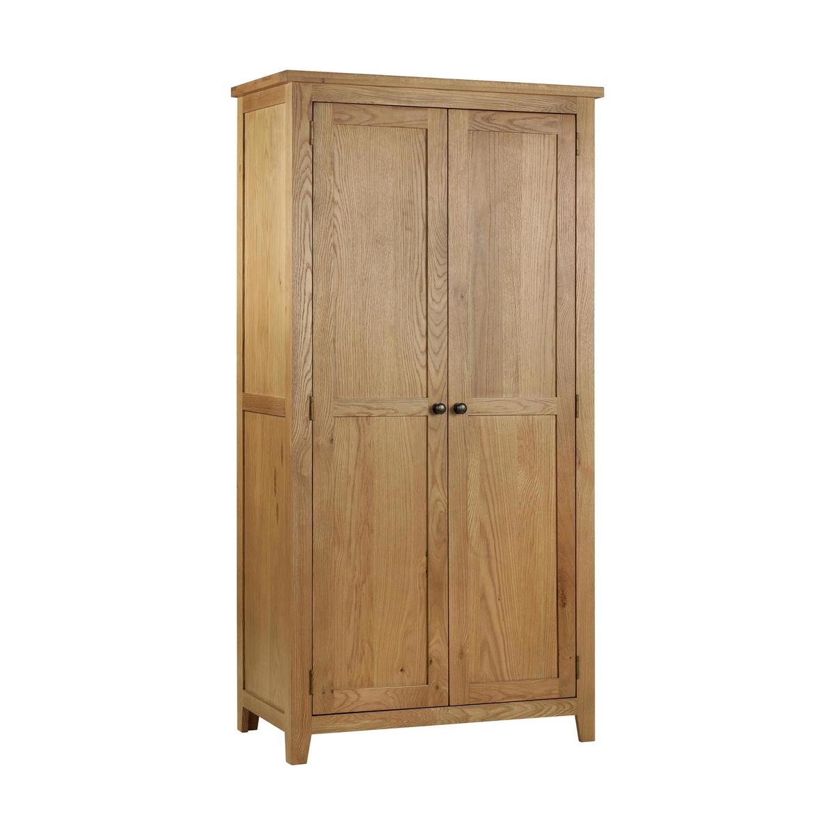 This is a self- assembly item Classic, well- made oak furniture that always feels at home Two door wardrobe with round metal handles Crafted from solid white American oak and oak veneers Hanging rail and one internal shelf Chunky, overhanging top and tapered feet Stylish inset door and end panels Beautifully finished with a wax coating WARNING! Furniture can tip over unexpectedly and cause injury. This item must be fixed to a wall using the anti- tip kit provided. Be sure to use the correct wall fixings suitable for the walls in your home. Furniture Village is not able to fix anti- tip devices for you. Seek professional advice if you are unsure.
