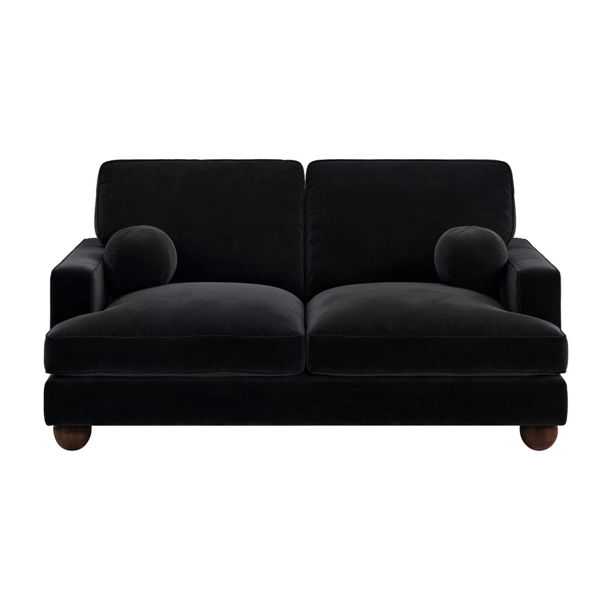 The Solace Co Addison 2 Seater Black Velvet Sofa blends classic elegance with a modern twist, making it a perfect addition to any sophisticated living space. Upholstered in luxurious black velvet, this sofa exudes opulence and style, effortlessly enhancing both traditional and contemporary interiors. Designed to stand out, the Addison features distinctive statement ball feet, which add a unique flair to its timeless silhouette. The sofa comes complete with matching scatter ball cushions for an added touch of glamour, providing both comfort and visual interest. This 2-seater is as practical as it is beautiful. The foam-filled back and seat cushions, along with removable cushion covers, make maintenance a breeze. Constructed with a solid wood frame for long-lasting durability, it offers exceptional support and stability. Assembly is simple and hassle-freejust attach the feet, and your new sofa is ready to elevate your home.