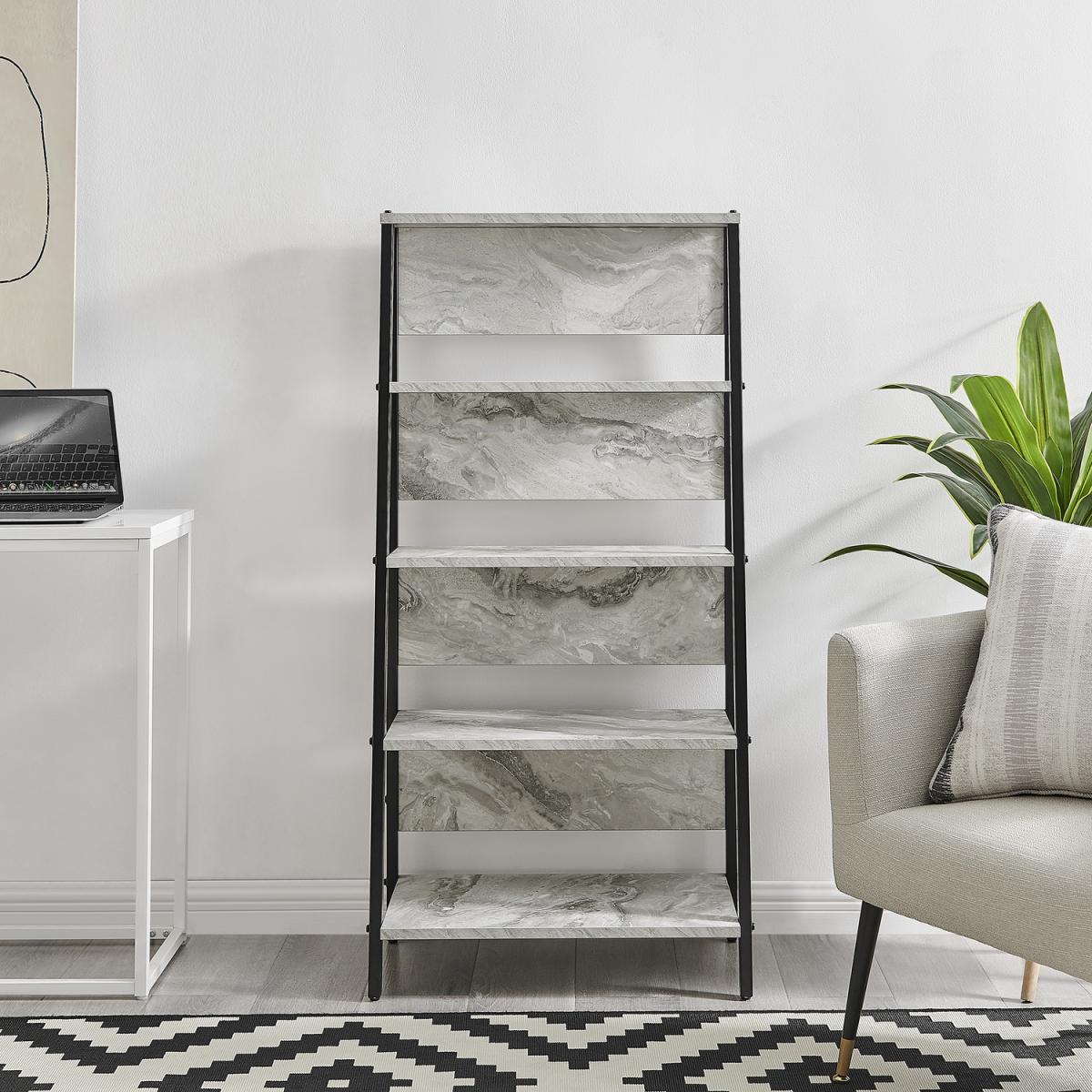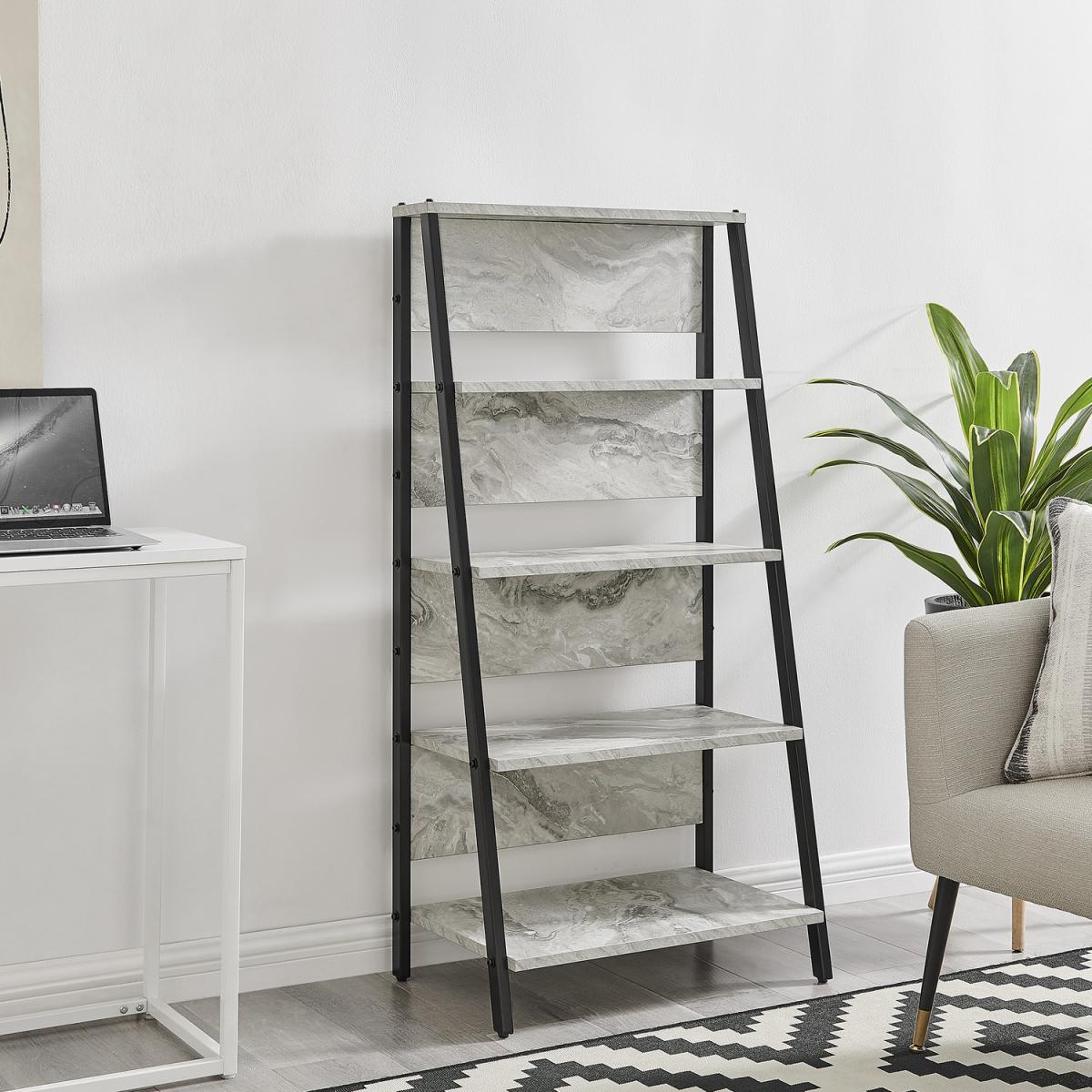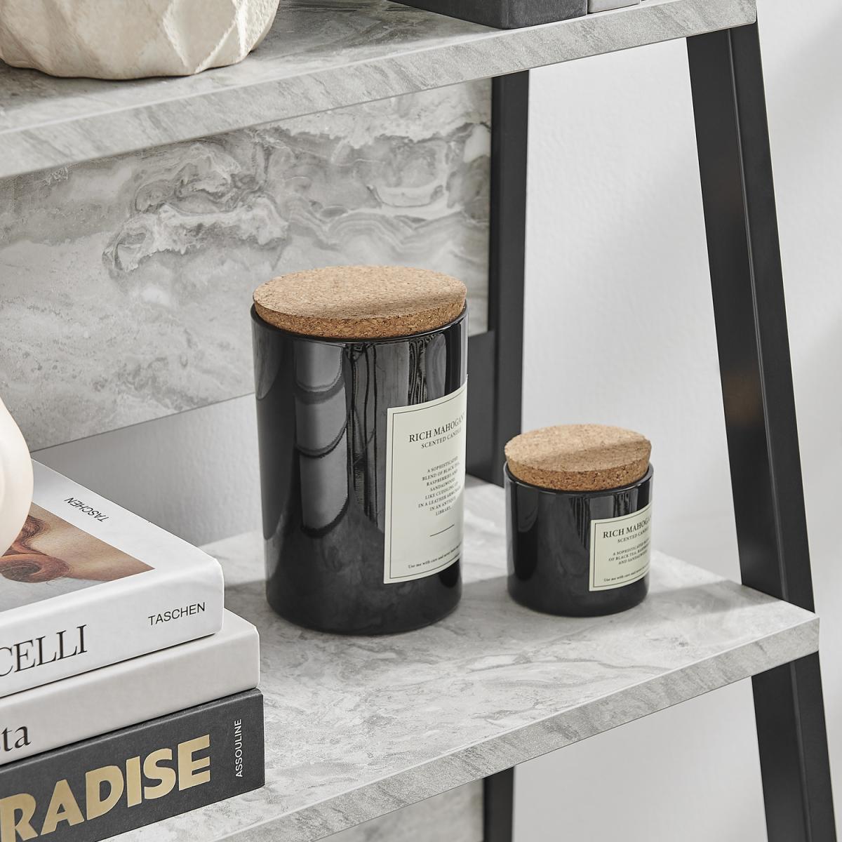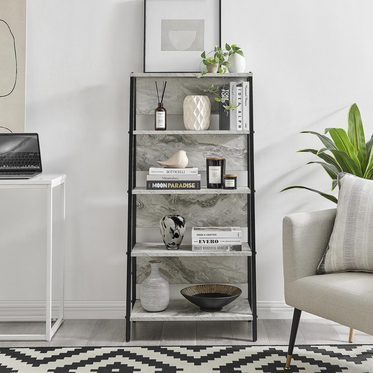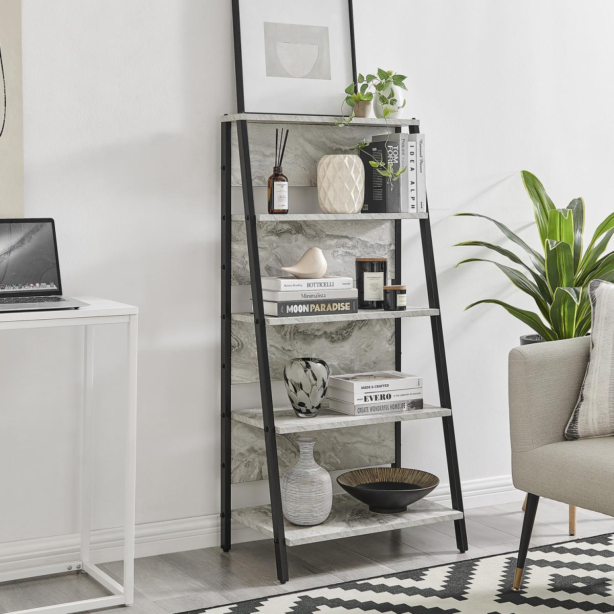 Our Addison Ladder Shelving Unit in black metal and melamine is an on-trend and versatile storage solution. Structural, simple and elegant. The black metal frame and melamine shelves create a striking minimalist look. A sleek Industrial chic style that will suit modern homes. Great for books and other household items, keeping your room tidy and organised. Perfect for living rooms, bedrooms, offices - anywhere that needs a little more storage. The melamine has a slight texture, and the matte black powder coated iron frame is sturdy. Plus, the melamine shelves are scratch resistant and easy to keep clean, so these shelves will stay looking great for years to come. Available in other colour combinations. Why not check out our other melamine dining room and living room furniture for a cohesive look?