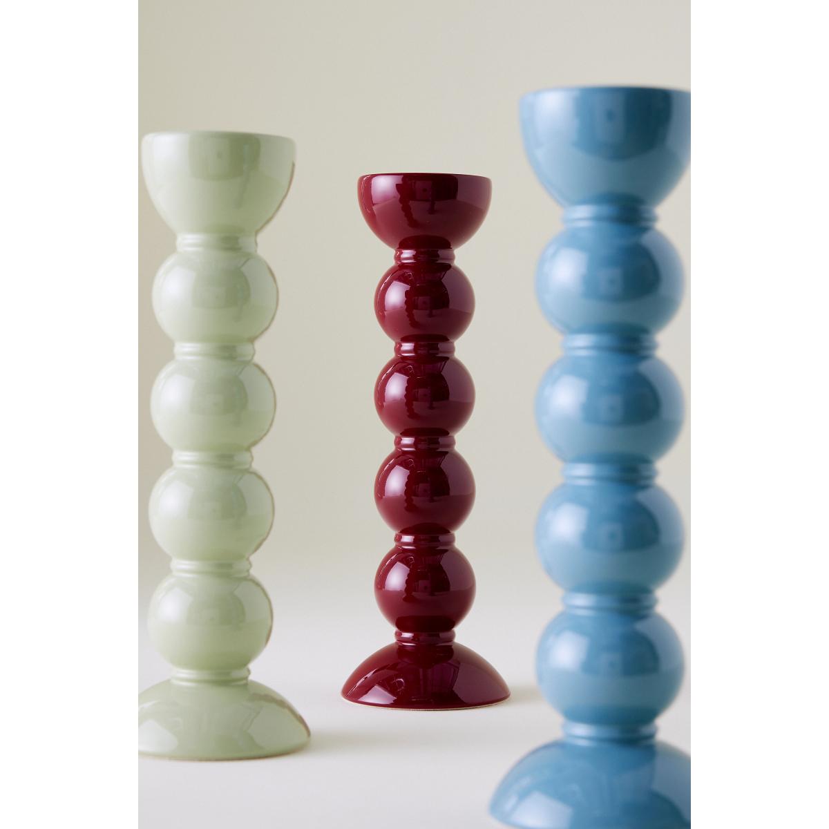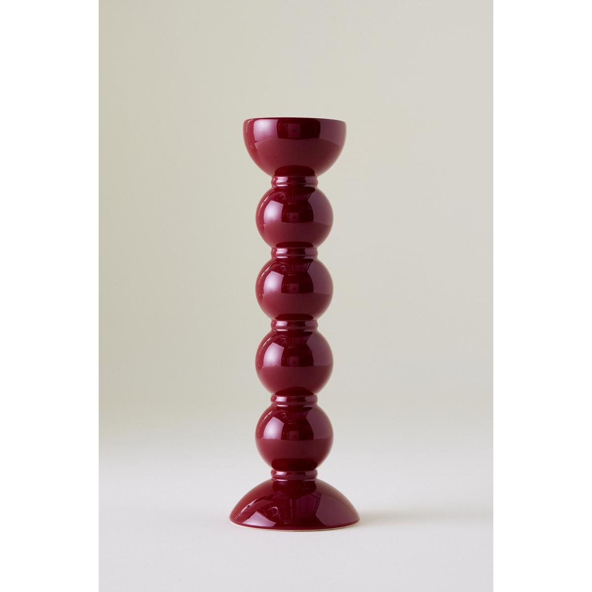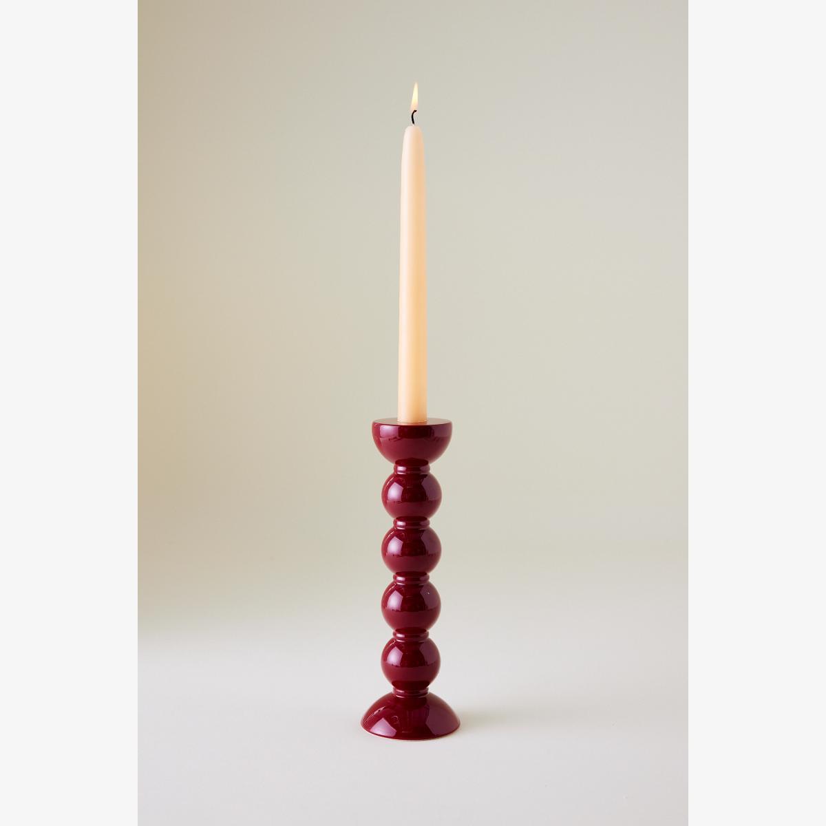 Hand-polished with eight coats of high-gloss lacquer, this bobbin-shaped candlestick holder brings personality to tabletops or a mantelpiece. * By Addison Ross * FSC certified solid rubber wood * High-gloss lacquer * Suitable for standard sized dinner candles * Wipe clean with damp, soft cloth * Made in UK