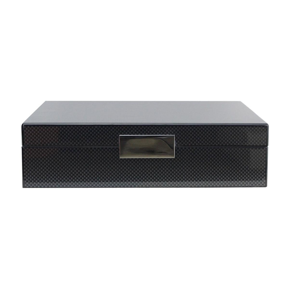 Addison Ross - Lacquer Box with Metal Clasp - Carbon Fibre - 23x30cm