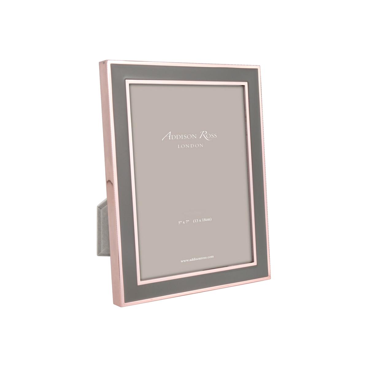 Update your home accessories with this Rose Gold photo frame from Addison Ross. The enamel frame takes a taupe tone, delightfully contrasting with the rose gold detailing. A great addition to stylishly display a favourite holiday or memory, team with more matching frames available separately to create an eye-catching statement. Key features: * Luxury photo frame * Material: enamel * Aperture: 5x7" * Frame width: 2cm * Taupe frame with rose gold detail * Luxury grey velvet back * Clean with a duster * More photo frames available separately