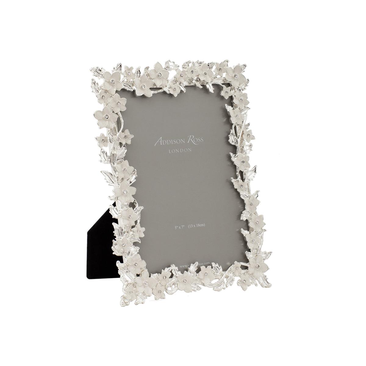 Make a pretty statement in any living space with this Silver Leaf & Cream Flower photo frame. Made from silver and enamel, this photo frame is one of the prettiest and enchanting designs from Addison Ross and features beautiful flowers finished with diamantes. A wonderful gift idea for any occasion, there are also further accessories available separately from Addison Ross. Key features: * Photo frame * Material: silver, enamel * Aperture size: 4x6" * Pretty flower design * With a diamante in the centre of the flowers * Neutral tones * Black velvet reverse * Clean with a duster * Suitable for portrait and landscape * More photo frames available separately