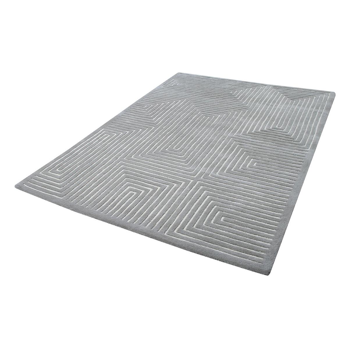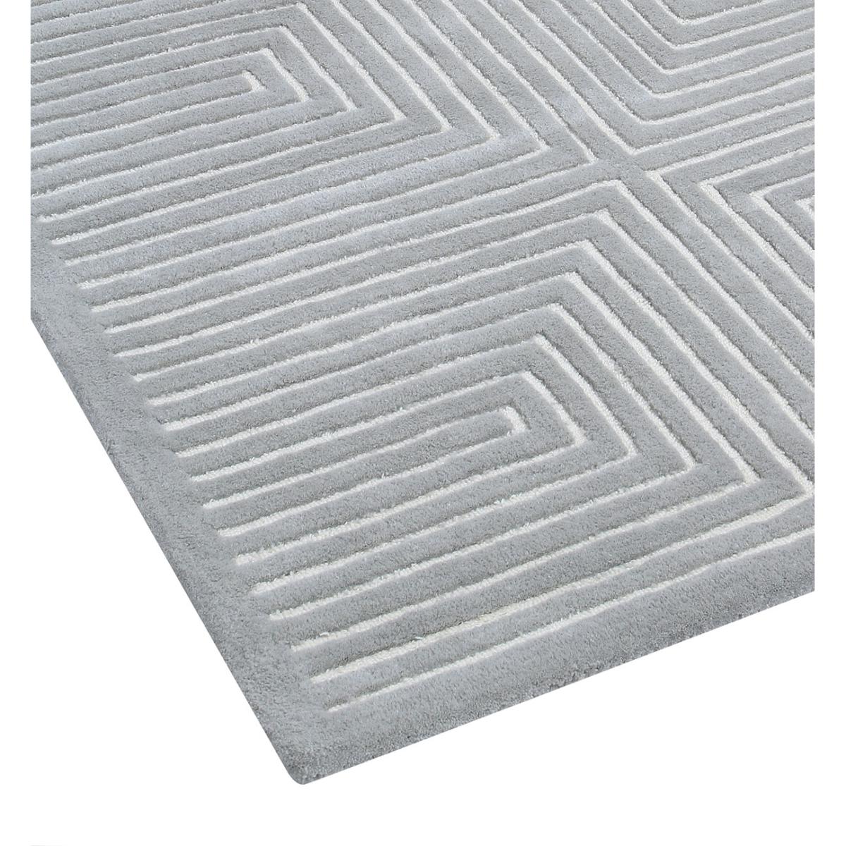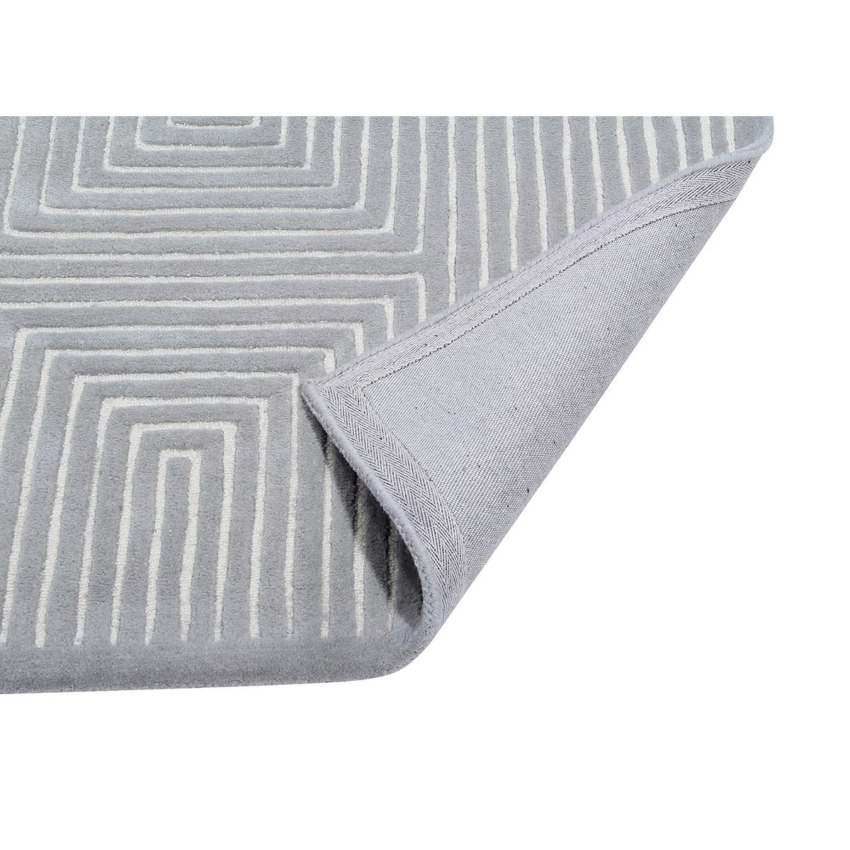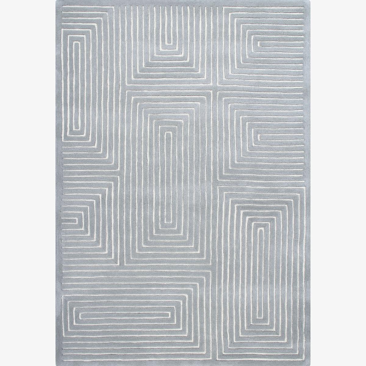 Geometric inspired design in cool tonal shades, featuring a high/low loop cut pile for added detail. Hand Tufted 100% Wool. Wool rugs shed fibres during vacuum cleaning and everyday use; this is not a fault but a natural characteristic. Please use only suction type vacuum cleaner as rotating brush vacuum may damage the rug. Spills should be cleaned immediately to help avoid staining- use a clean white absorbent cloth to dab the spillage, avoid scrubbing and chemical cleaners. For deep cleaning use a professional carpet cleaning company- do not dry clean or tumble dry. If loose threads appear carefully trim them with scissors.