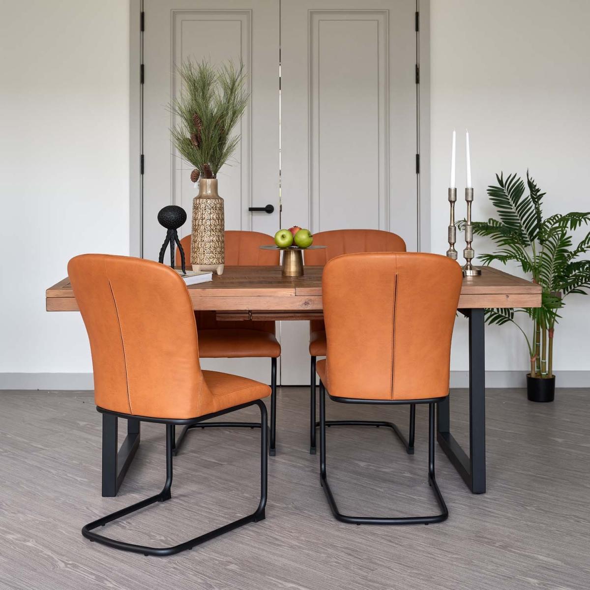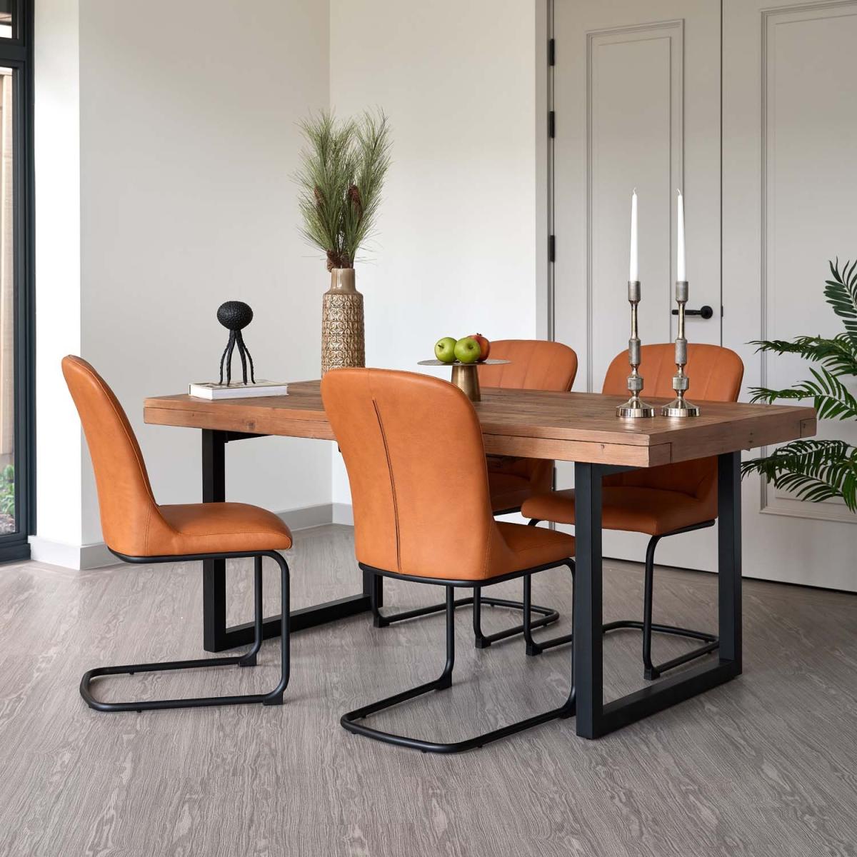 This Adelaide and Firenza dining set allows you to seat the whole family in comfort and style! The reclaimed wood table top brings an industrial look to any dining room, offering a natural and sustainable option. The sleek Firenza faux leather dining chairs in tan keep the room feeling timeless yet modern, and provide the perfect complement to this stunning extending dining table.