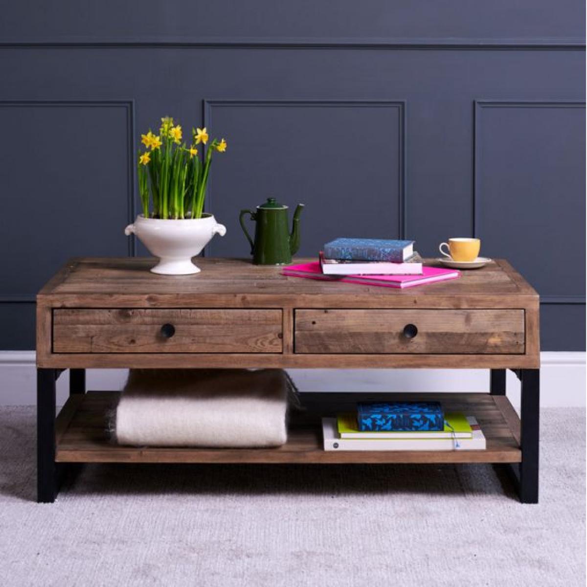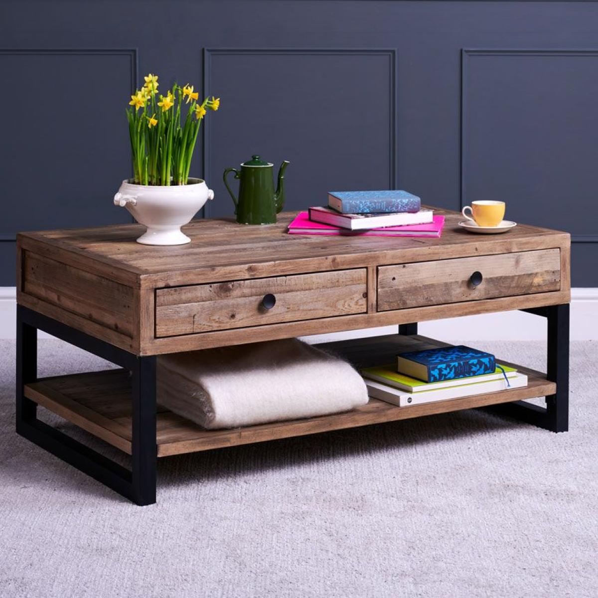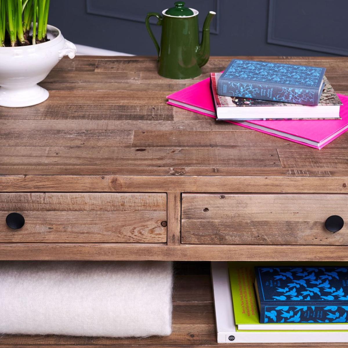 Whatever you are going to put on it; coffee, tea, newspapers.. feet, this rustic Adelaide. Industrial style coffee table. With drawers can take it. Featuring a great storage shelf and two drawers, this reclaimed timber coffee table suits so many living room styles. Every piece from the Adelaide range has it's own history, and of course being reclaimed timber it's better for our environment. Please note: Reclaimed wood has a history and as a result, it's own character. It may have been used for buildings and structures over many years. It is a rustic material, and no two pieces are the same. Random markings & holes are a standard feature of reclaimed wood.