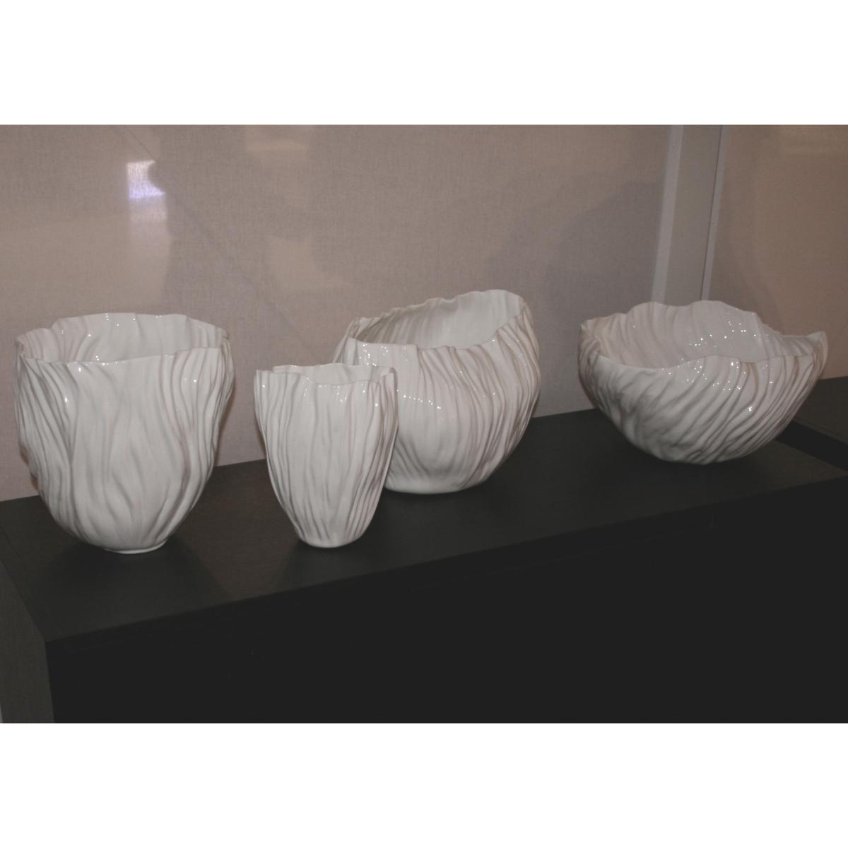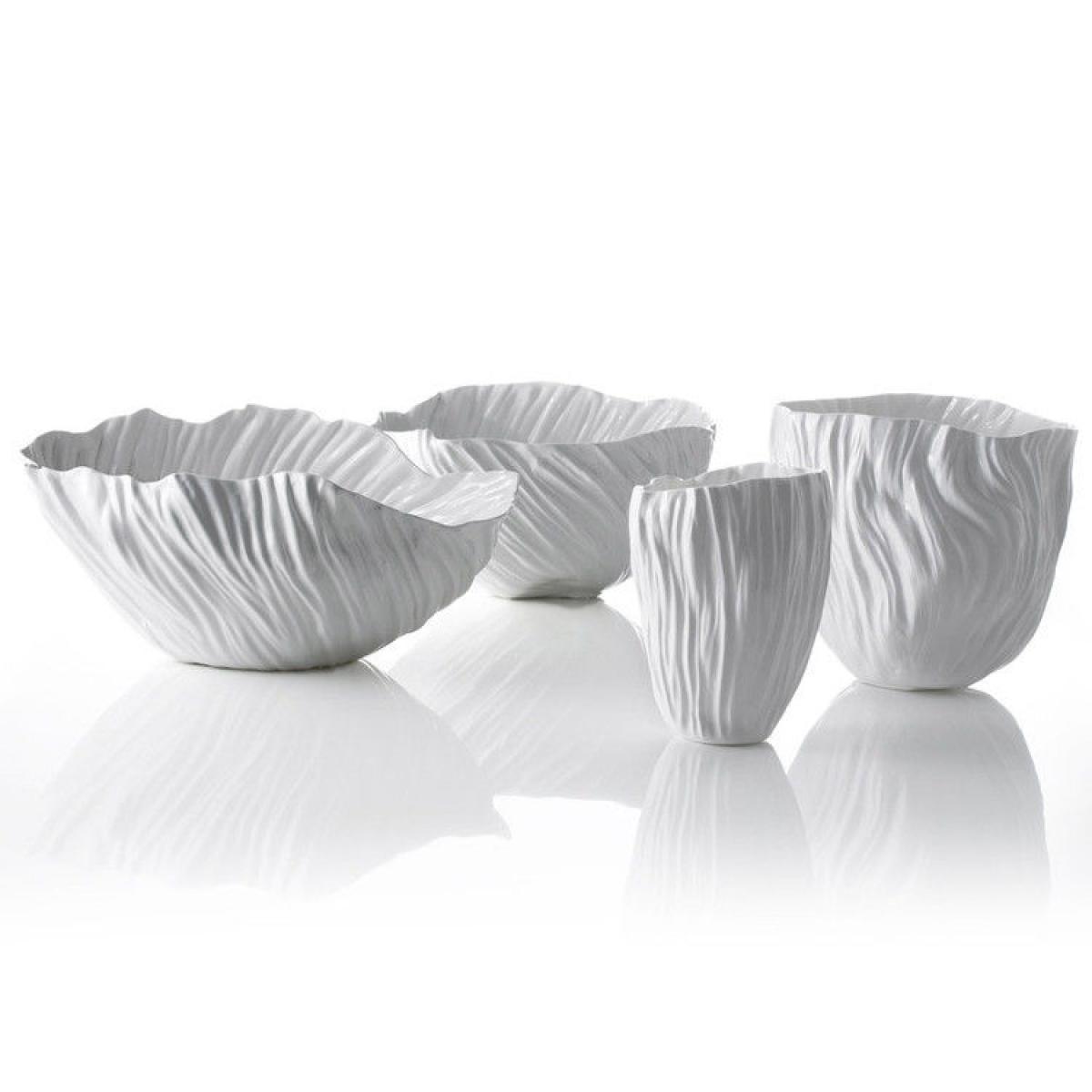 "With my eyes closed, I feel with my hands what is flowing and floating. " That's how artist Xie Dong responds when asked to describe her work, sculpting rippling water or curling leaves in glazed bone china. She produces them in an artists' district on the outer fringes of Beijing, where she shares a 4,000-square-foot studio with her boyfriend, a sculptor and landscape designer, and their four cats. A graduate of the Chinese capital's Art and Design Institute, she experimented with various mediums before settling on ceramics. Her Adelaide collection of poetic dinnerware and vases is named after one of the owners of Driade : bearing names such as Ripple, Wrinkled Paper, Melting Ice, and Ocean Creatures.