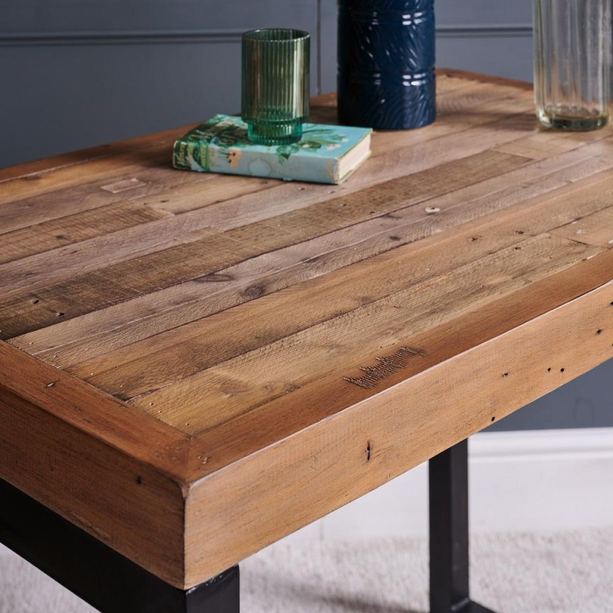 Perfect for enjoying drinks with friends in the evening and eating a beautiful breakfast with family the next morning, the industrial inspired Adelaide Rectangular Bar Table will bring a touch of rustic chic into your home. The tables top is handmade from a reclaimed timber surface with a distressed finish that has been treated to ensure its rustic patina isn't rough. Please note: Reclaimed wood has a history and as a result, it's own character. It may have been used for buildings and structures over many years. It is a rustic material, and no two pieces are the same. Random markings & holes are a standard feature of reclaimed wood.