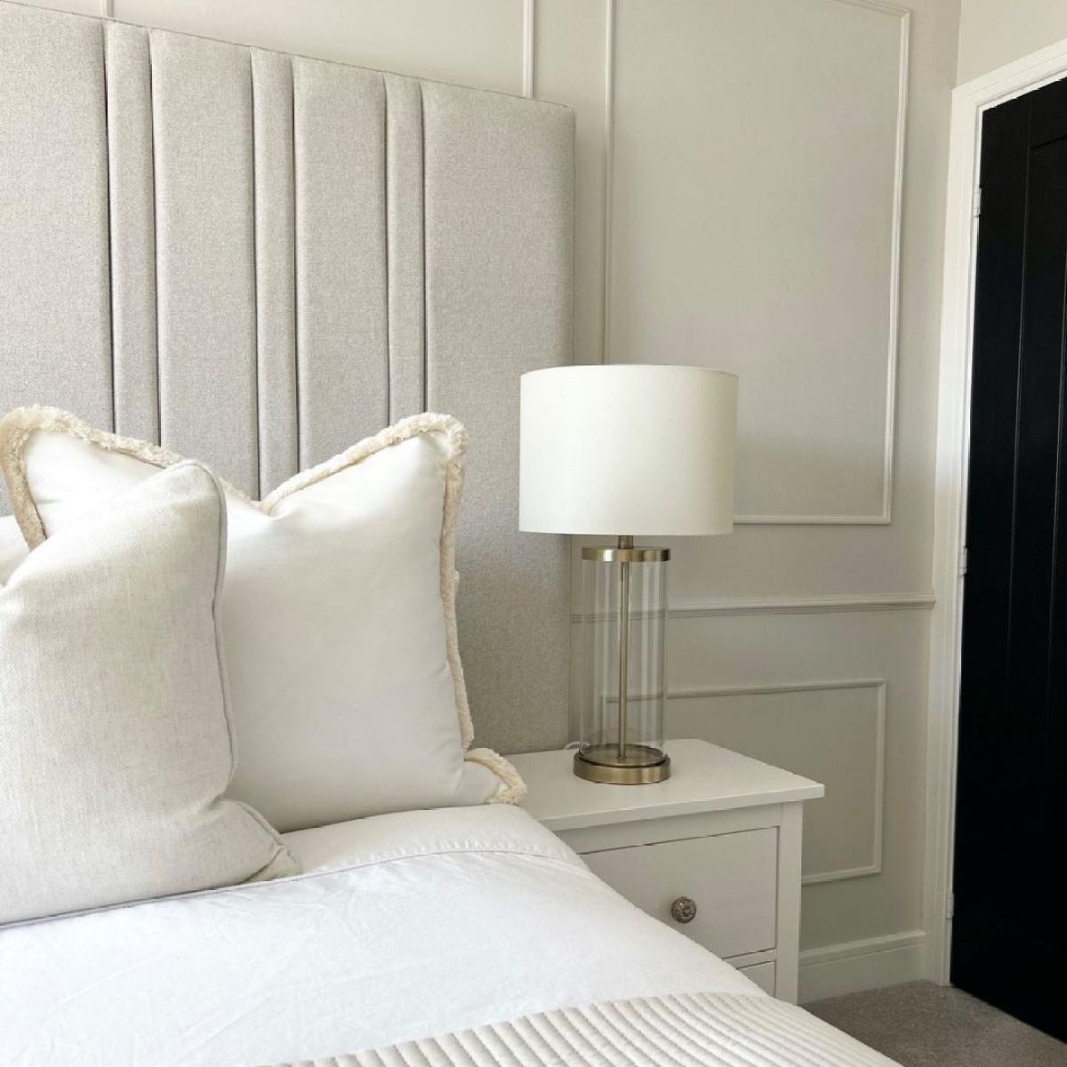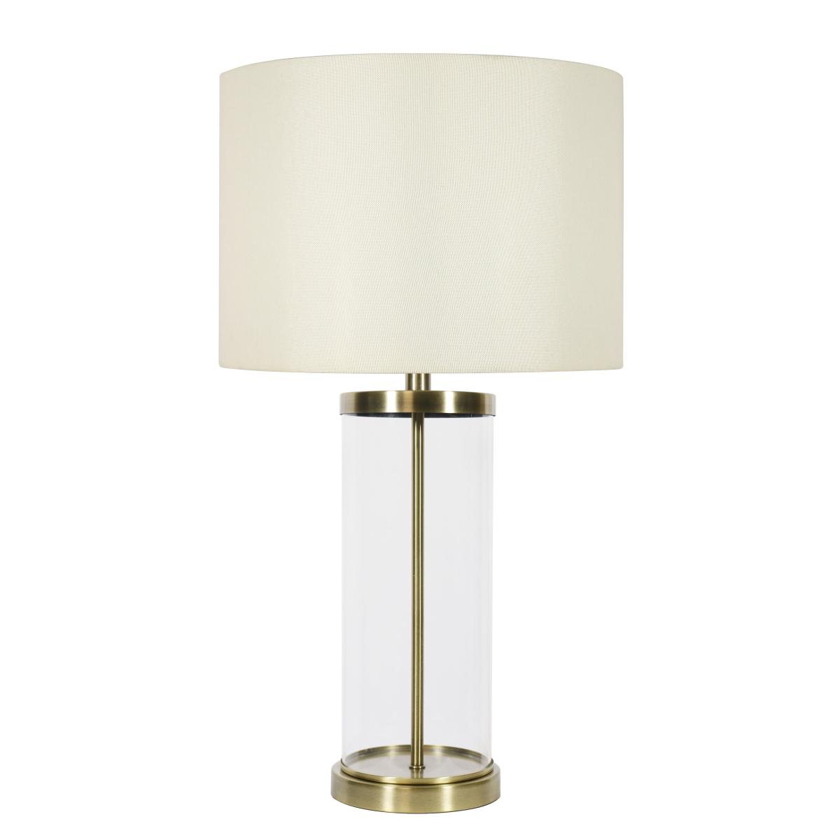 The Adelia Table Lamp is a beautifully simple table light with a clear glass base, paired with an ivory shade and a brushed gold effect finish. Available in 4 different finishes and colours, perfect for creating ambience in a bedroom or living room.