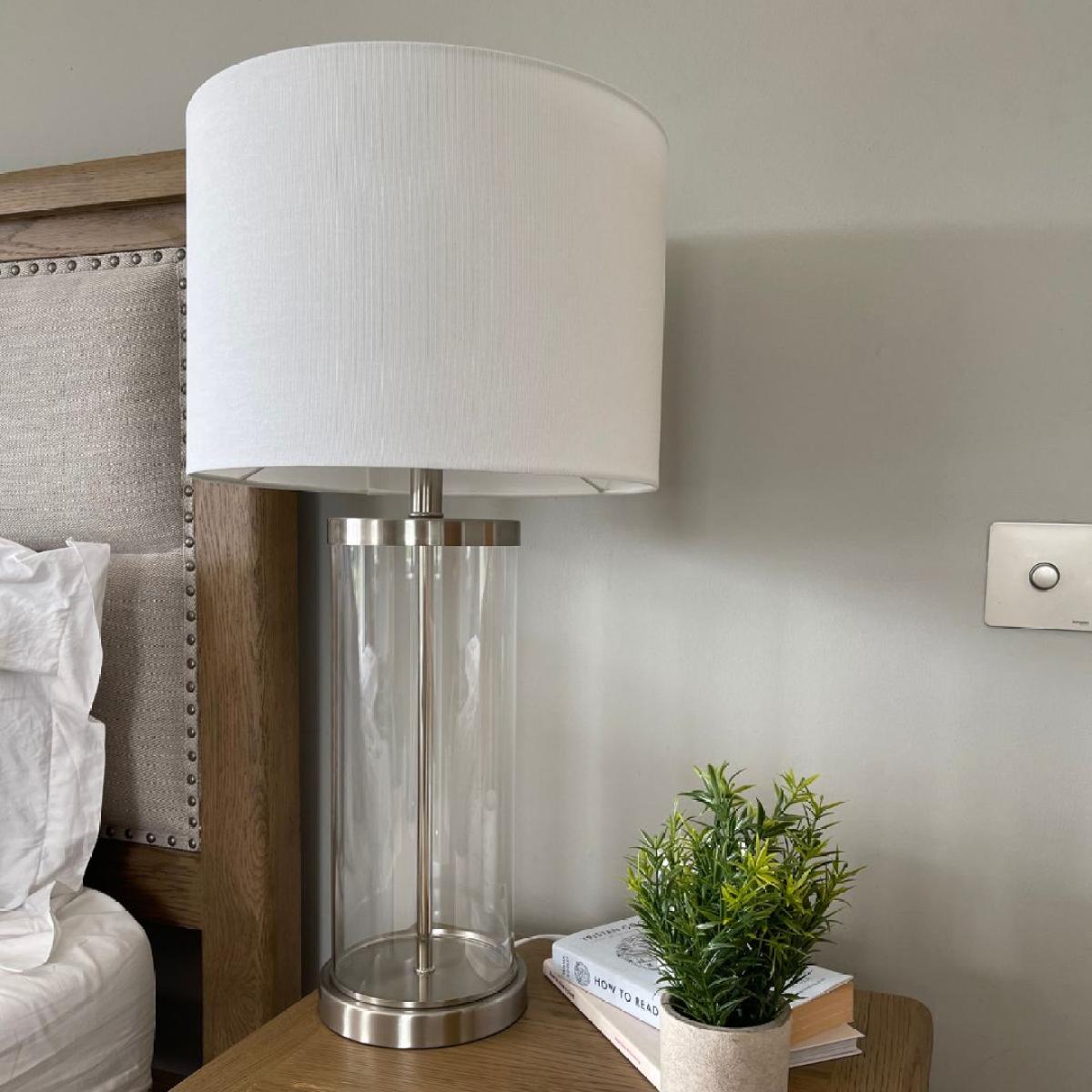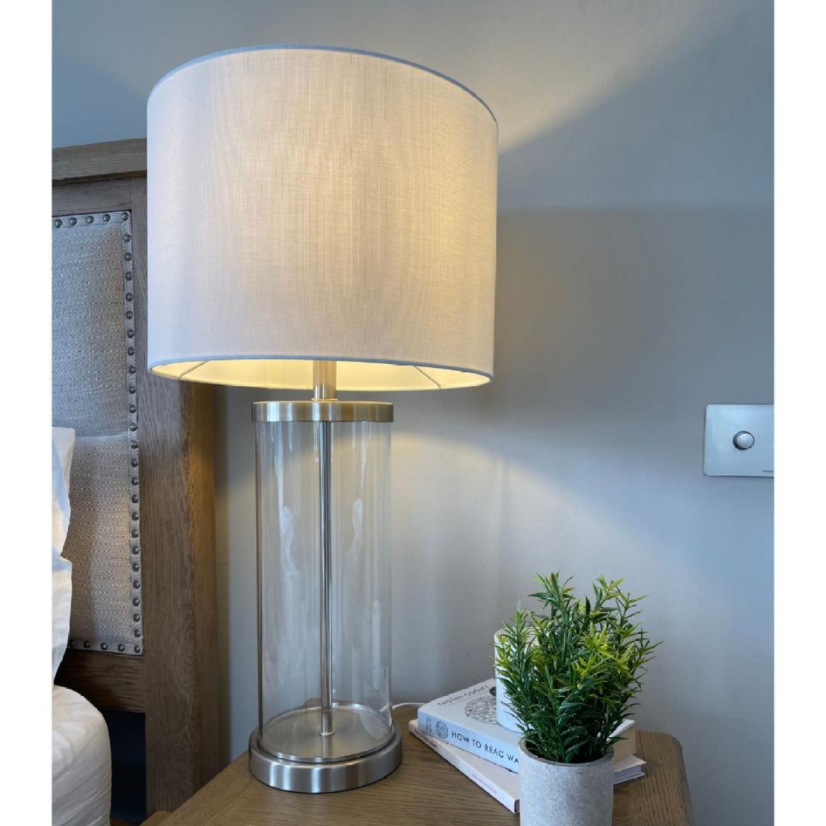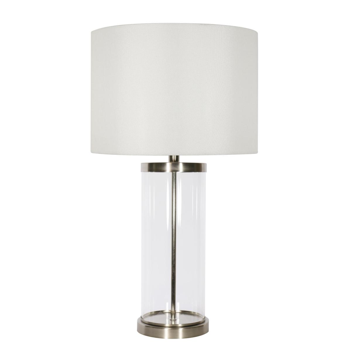 The Adelia Table Lamp is a beautifully simple table light with a clear glass base, paired with a white shade and a satin chrome effect finish. Available in 4 different finishes and colours, perfect for creating ambience in a bedroom or living room.