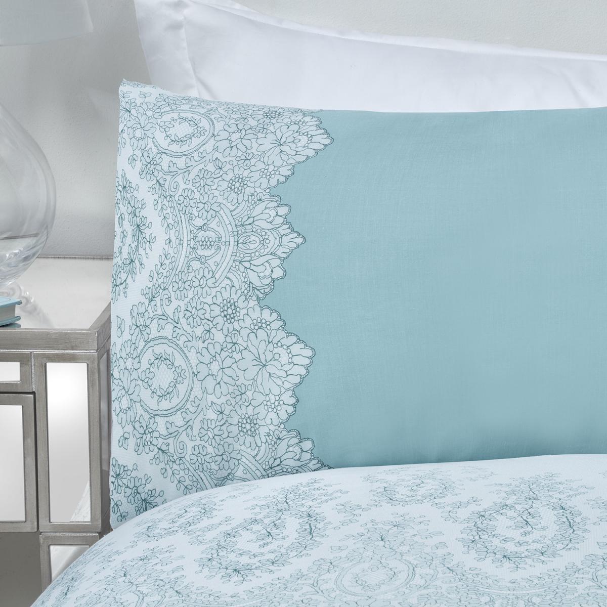 Adeline Lace Duvet Cover and Pillowcase Set - Duck Egg / King