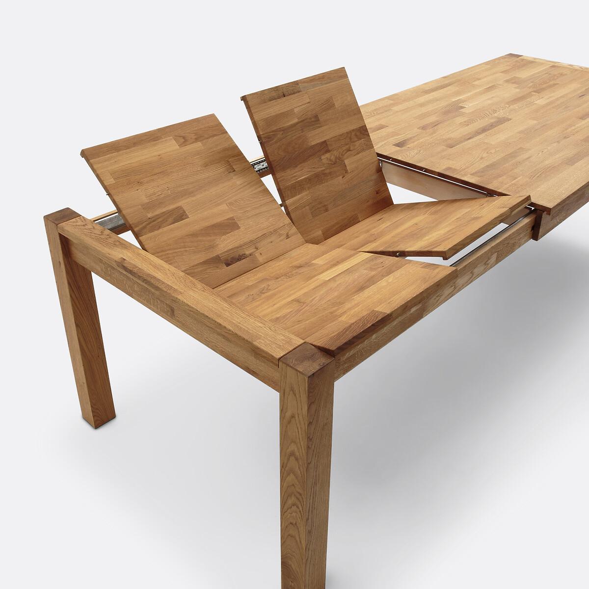 The Adelita oak dining table: perfectly proportioned and very stylish with square legs flush with the table top. Its 2 butterfly extensions will allow you to seat up to 12 people. An exclusive creation by our in-house designers. Made in Europe. Product Details • FSC® certified oak, finger-jointed, oiled finish • 2 butterfly extensions (rows under the top), width 45cm • Metal runners • Thick legs • 6 to 12 place settings. Quality Info This table has an oiled finish which brings out the grain of the wood. Therefore, it is possible to feel the texture of the wood grain. In order to preserve its look and natural properties, this furniture should be regularly maintained. Care advice • Oil your furniture at least once a year with paraffin or petroleum jelly oil, in order to seal the pores of the wood and make it less sensitive to variations in humidity. • In the case of use in high heat or high humidity, renew the application of oil more frequently. • After each application, allow the wood time to absorb the oil before each use. • Dust regularly with a dry cloth. • Clean with a damp cloth. • In case of stains, sand with fine sandpaper then apply oil. • Do not use solvent-based or abrasive cleaners. DimensionsOverall. Without extensions • Length: 170cm • Height: 77cm • Width: 100cm. With 1 extension • Length: 215cm • Height: 77cm • Width: 100cm. With 2 extensions • Length: 260cm • Height: 77cm • Width: 100cm. Usable space Height between the ground and the start of the top: 65.5cm. Home Delivery. This product is sold for self-assembly. It will be delivered to your door. Note! Please check that access points (doorways, stairways, lifts) are wide enough to accommodate your delivery. • Made in Europe. • WOOD FROM SUSTAINABLY MANAGED FORESTS. FSC® certified wood comes from forests that are environmentally, socially and economically well managed. Dimensions and weight of parcel2 parcels • L161.5 x H12.5 x D106cm - 54kg • L161.5 x H12.5 x D26.5cm - 18.5kg