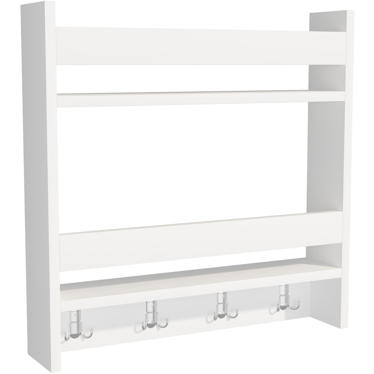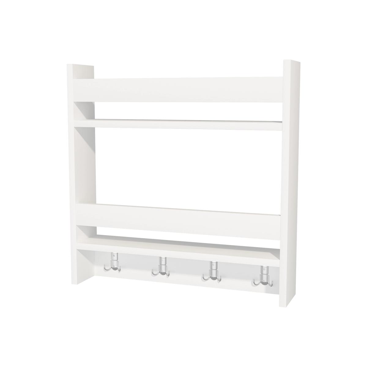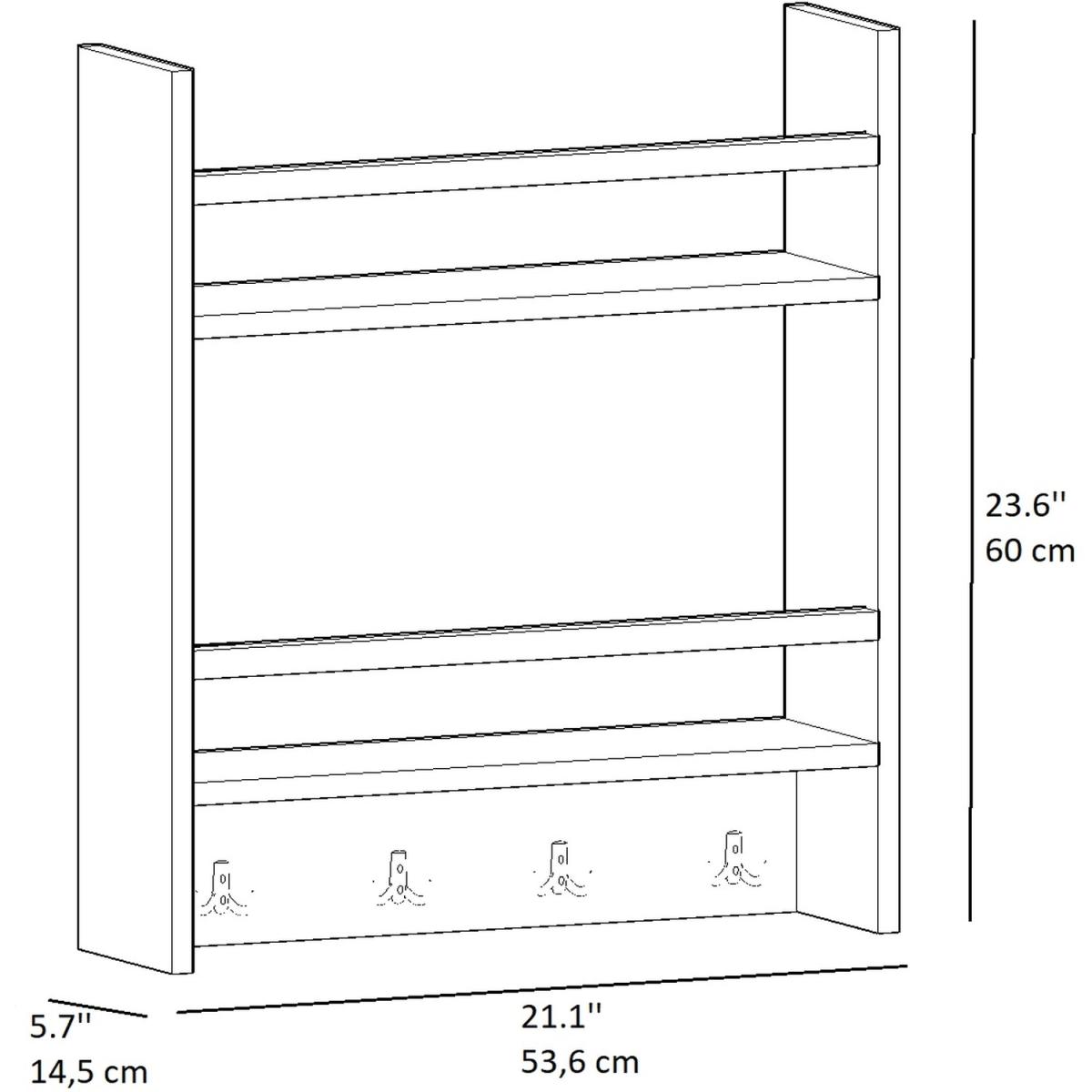 The wall shelf is made of thick high-quality melamine-coated particleboard. The manufactured wood surface is water-resistant to some extent and the edges are banded with PVC edge banding tape. Hooks are constructed from quality iron metal and coated with powder coating. First-class assemblyinstallation hardware and accessories are used. Our products are produced from certified quality raw materials that do not contain carcinogenic substances and comply with European Union health norms.