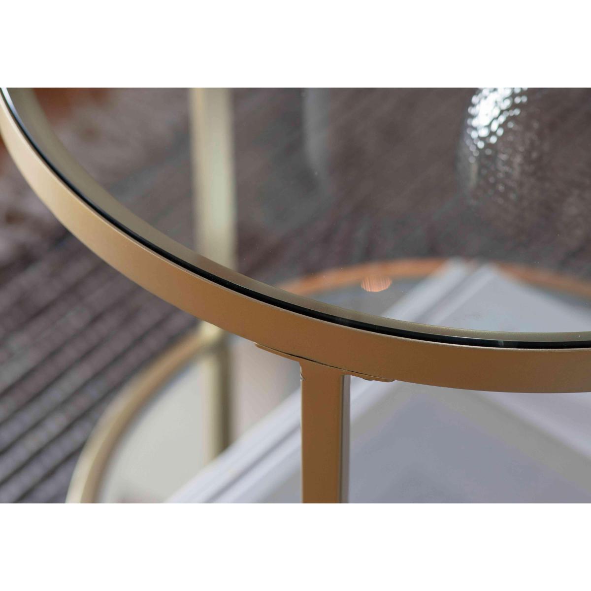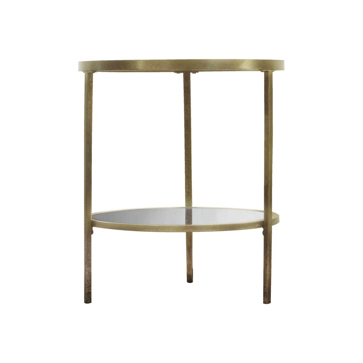 With a sleek Nordic-inspired design and a clean-cut finish, our new Adelyn Lamp Table will give your space an effortlessly on-trend look. More than just a lamp table, Adelyn is the ultimate versatile side table. Why you'll love it. Modern yet practical design for a Scandi interior. Sleek bevelled mirrored shelf for displaying all your favorite books. Beautifully crafted metal frame with an aged bronze finish. Tempered clear round glass top with a mirrored effect. Metal frame available in a brushed bronze or champagne finish. What you need to know. Adjustable feet to ensure a level finish. Part of the Adelyn range. Made out of metal and glass. Self assembly. Coasters are recommended. Dimensions. Height: 60 cm (24 in). Width: 50 cm (20 in).