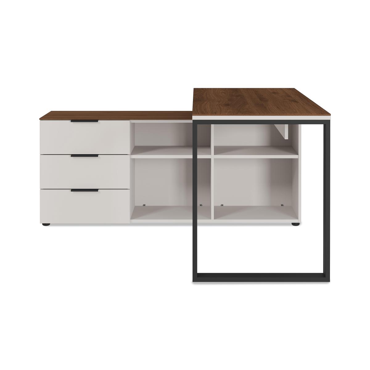 Transform your home office with stylish and functional office furniture from our Aden range. Designed and made in Germany, Aden is a completely modular collection that makes it easy to create – and recreate if you change your mind – the perfect home office setup. Pieces are finished in durable, scratch-resistant melamine with reinforced edges and come in a choice of contemporary colourways. The range includes roomy storage cabinets, stylish bookcases, corner desks, filing cabinets and more in a wide range of sizes to suit all kinds of home office spaces. Aden is part of the home office collection at Furniture Village. When it comes to working from home, the environment is everything. Create a work-friendly and very stylish home office space with this fabulous corner desk. Practical melamine finish. Why you'll love it This corner desk makes it easy to stay on top of your workload. Modular home office style that’s fabulous and functional. Elegant modern cashmere and walnut-effect finish. Storage unit has open shelves and 3 drawers with metal pulls. Silent soft-closing drawers have metal runners. In scratch-resistant melamine with shock-resistant edges. Made in Germany. A Furniture Village online exclusive. This corner desk with storage cabinet is part of our Aden range. What you need to know Easy self-assembly required, full instructions included. Storage unit can be positioned on either the left- or right-hand side of the desk at time of assembly. Surface has a durable melamine resin coating. Create your perfect home office setup with the Aden range. Mix and match a wide choice of modular pieces.