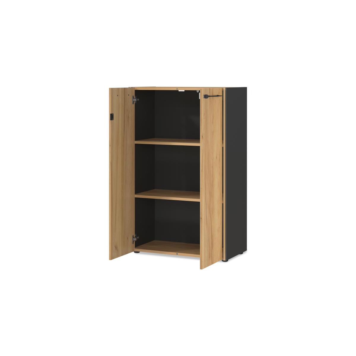 Transform your home office with stylish and functional office furniture from our Aden range. Designed and made in Germany, Aden is a completely modular collection that makes it easy to create – and recreate if you change your mind – the perfect home office setup. Pieces are finished in durable, scratch-resistant melamine with reinforced edges and come in a choice of contemporary colourways. The range includes roomy storage cabinets, stylish bookcases, corner desks, filing cabinets and more in a wide range of sizes to suit all kinds of home office spaces. Aden is part of the home office collection at Furniture Village. The perfect choice for bound files and document wallets, this large cabinet is spacious and withstands everyday knocks and bumps thanks to its melamine finish. Part of our modular Aden range. Why you'll love it Keep all your office documents out of sight in this filing cabinet. Modular home office style that’s fabulous and functional. In 2 colourways – elegant cashmere and walnut, contemporary oak and graphite. In scratch-resistant melamine with shock-resistant edges. Made in Germany. A Furniture Village online exclusive. This filing cabinet is part of our Aden range. What you need to know Easy self-assembly required, full instructions included. 2 shelves. Cashmere and walnut-effect option has 2 metal door pulls. Oak-effect and graphite option has 2 metal door handles. Surface has a durable melamine resin coating. Create your perfect home office setup with the Aden range. Mix and match a wide choice of modular pieces. WARNING!Furniture can tip over unexpectedly and cause injury. This item must be fixed to a wall using the anti-tip kit provided. Be sure to use the correct wall fixings suitable for the walls in your home. Furniture Village is not able to fix anti-tip devices for you. Seek professional advice if you are unsure.