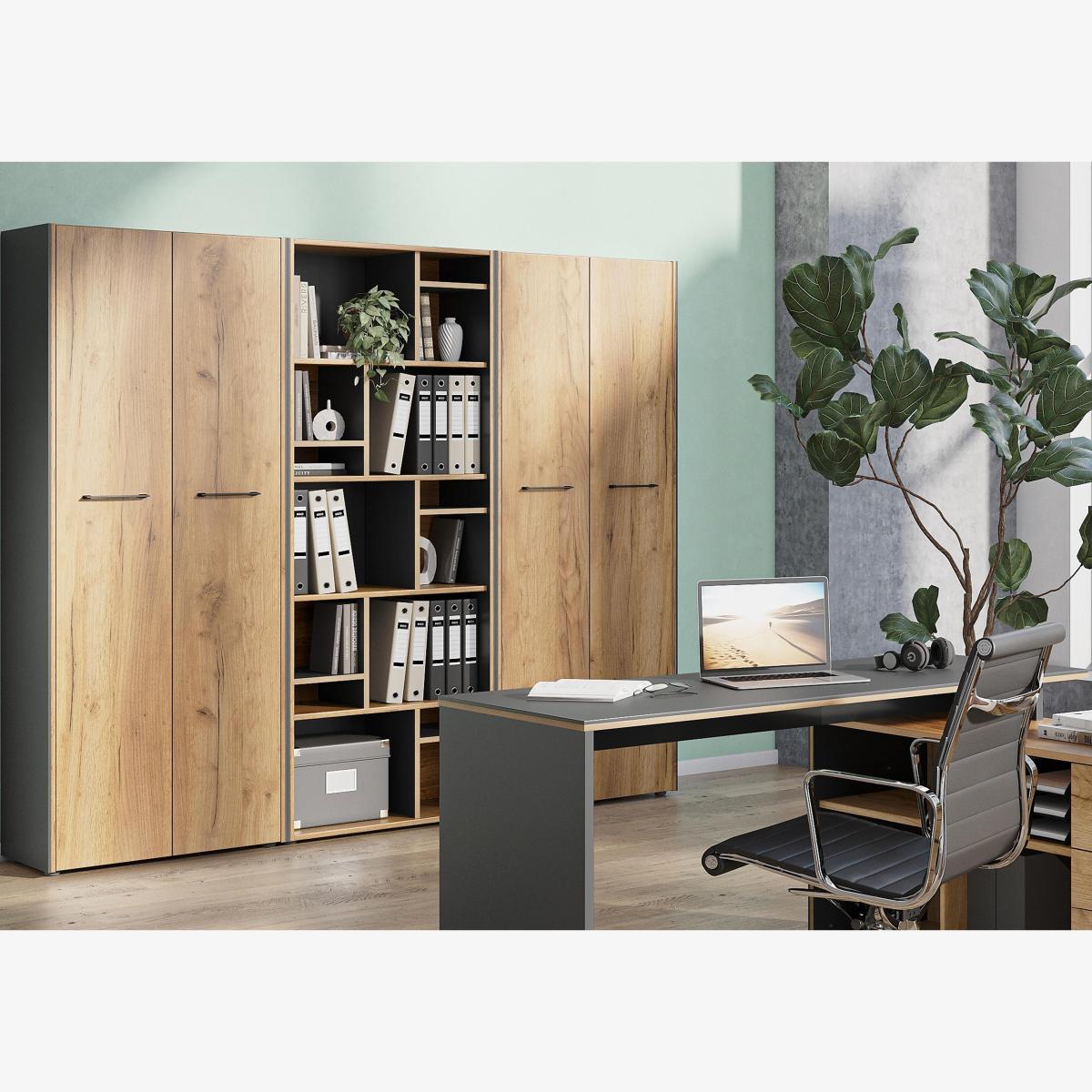 Transform your home office with stylish and functional office furniture from our Aden range. Designed and made in Germany, Aden is a completely modular collection that makes it easy to create – and recreate if you change your mind – the perfect home office setup. Pieces are finished in durable, scratch-resistant melamine with reinforced edges and come in a choice of contemporary colourways. The range includes roomy storage cabinets, stylish bookcases, corner desks, filing cabinets and more in a wide range of sizes to suit all kinds of home office spaces. Aden is part of the home office collection at Furniture Village. Part of our modular Aden home office furniture range, this tall filing cabinet is the easiest and most stylish way to keep your workspace clutter free. Hardwearing and practical melamine finish. Why you'll love it Tall filing cabinet is the perfect addition to your home office. Modular home office style that’s fabulous and functional. Contemporary oak-effect and graphite finish. With 2 horizontal metal door handles. In scratch-resistant melamine with shock-resistant edges. Made in Germany. A Furniture Village online exclusive. This tall filing cabinet is part of our Aden range. What you need to know Easy self-assembly required, full instructions included. 4 shelves. Surface has a durable melamine resin coating. Create your perfect home office setup with the Aden range. Mix and match a wide choice of modular pieces. WARNING!Furniture can tip over unexpectedly and cause injury. This item must be fixed to a wall using the anti-tip kit provided. Be sure to use the correct wall fixings suitable for the walls in your home. Furniture Village is not able to fix anti-tip devices for you. Seek professional advice if you are unsure.