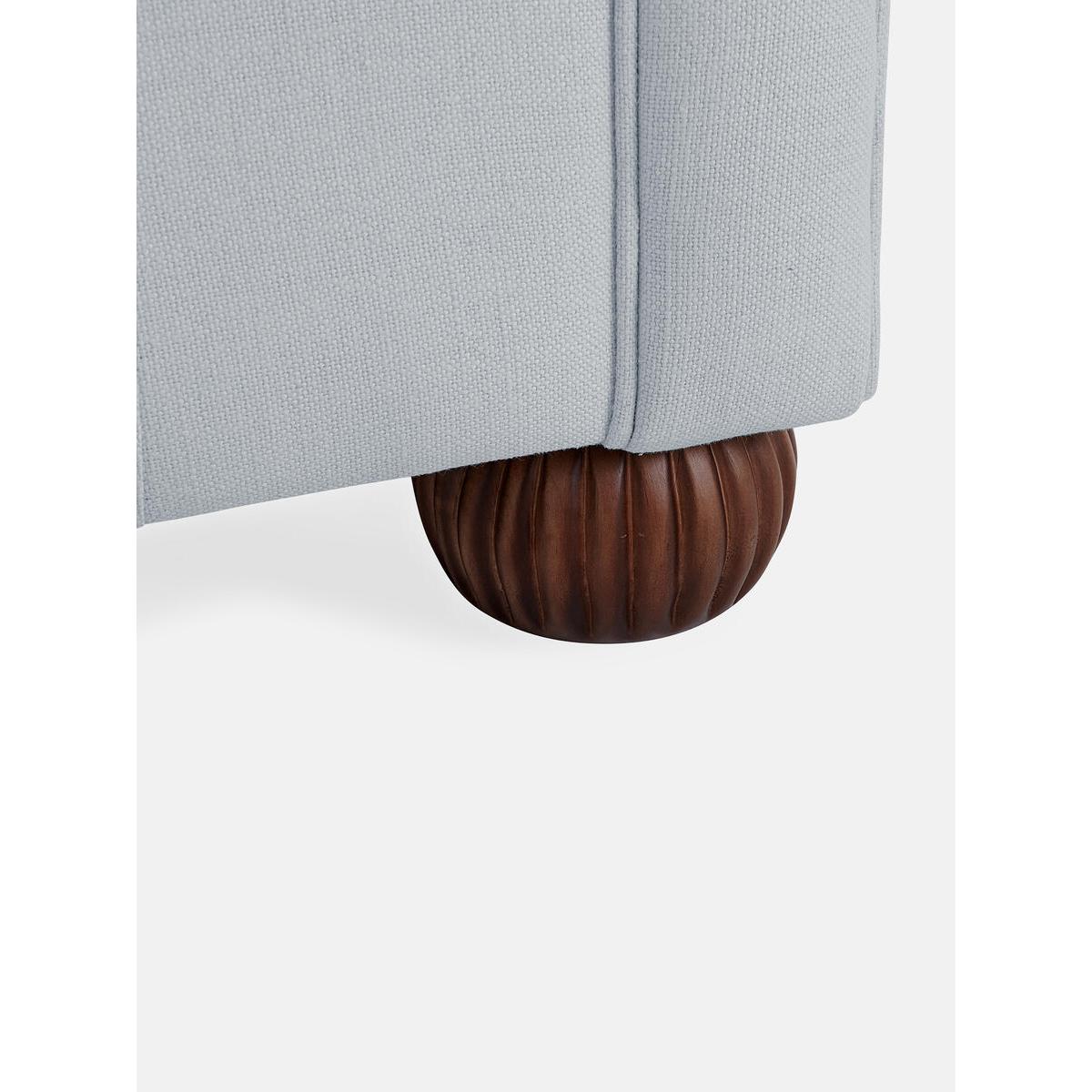 The Aderyn sofa is inspired by the comfort of the British Chesterfield sofa, a favourite in our very first club at Soho House40 Greek Street. Our modern take includes fluted wooden bun legs,removable and reversible seat cushions, and a feather wraparoundfoam core. The back rest is angled to offer a deep, comfortablesit. Three-seater sofa. Fluted wooden bun legs. Removable and reversible seat cushions. Feather-wrapped foam cushions. Angled back rest for comfort. Handmade in the UK. Inspired by Soho House 40 Greek Street.