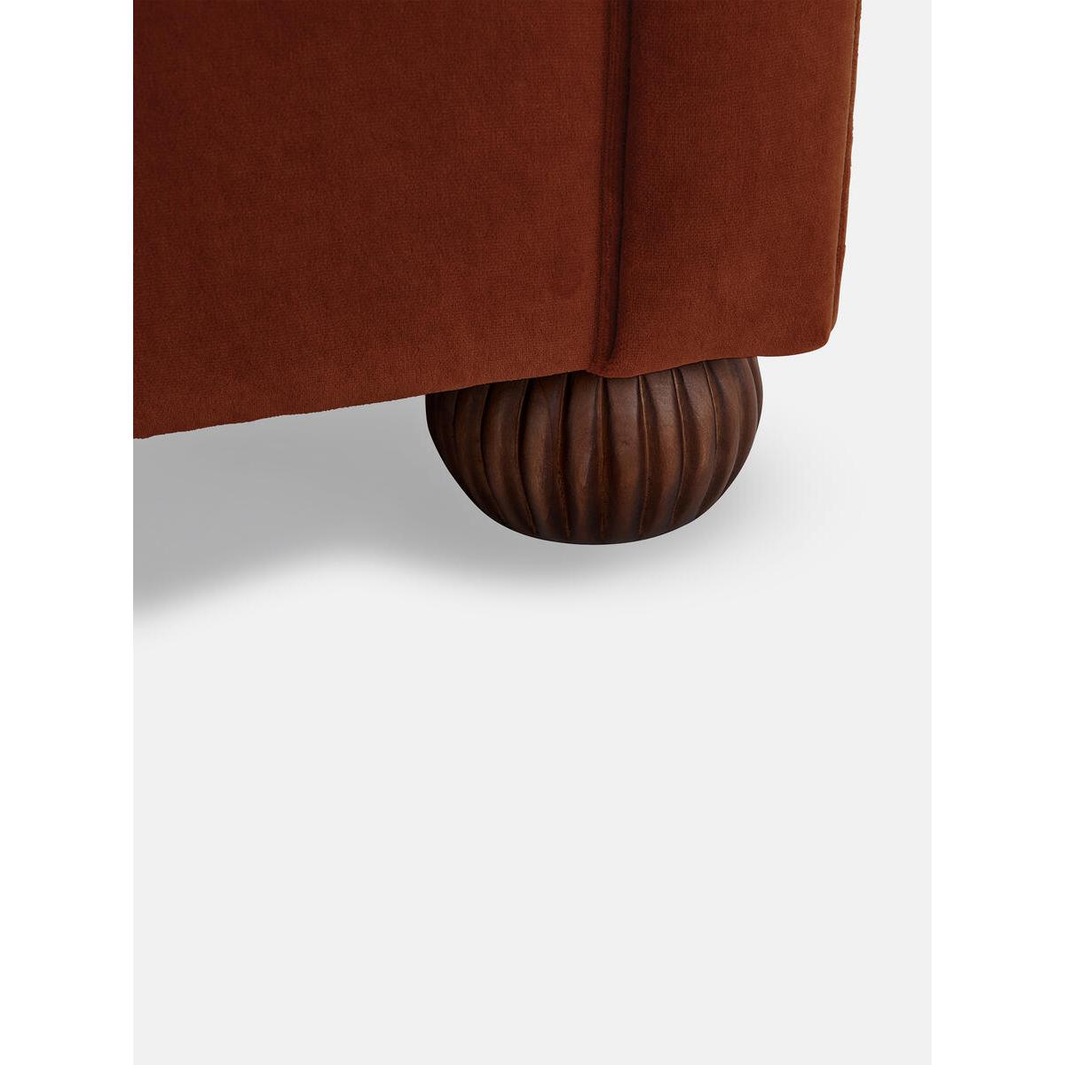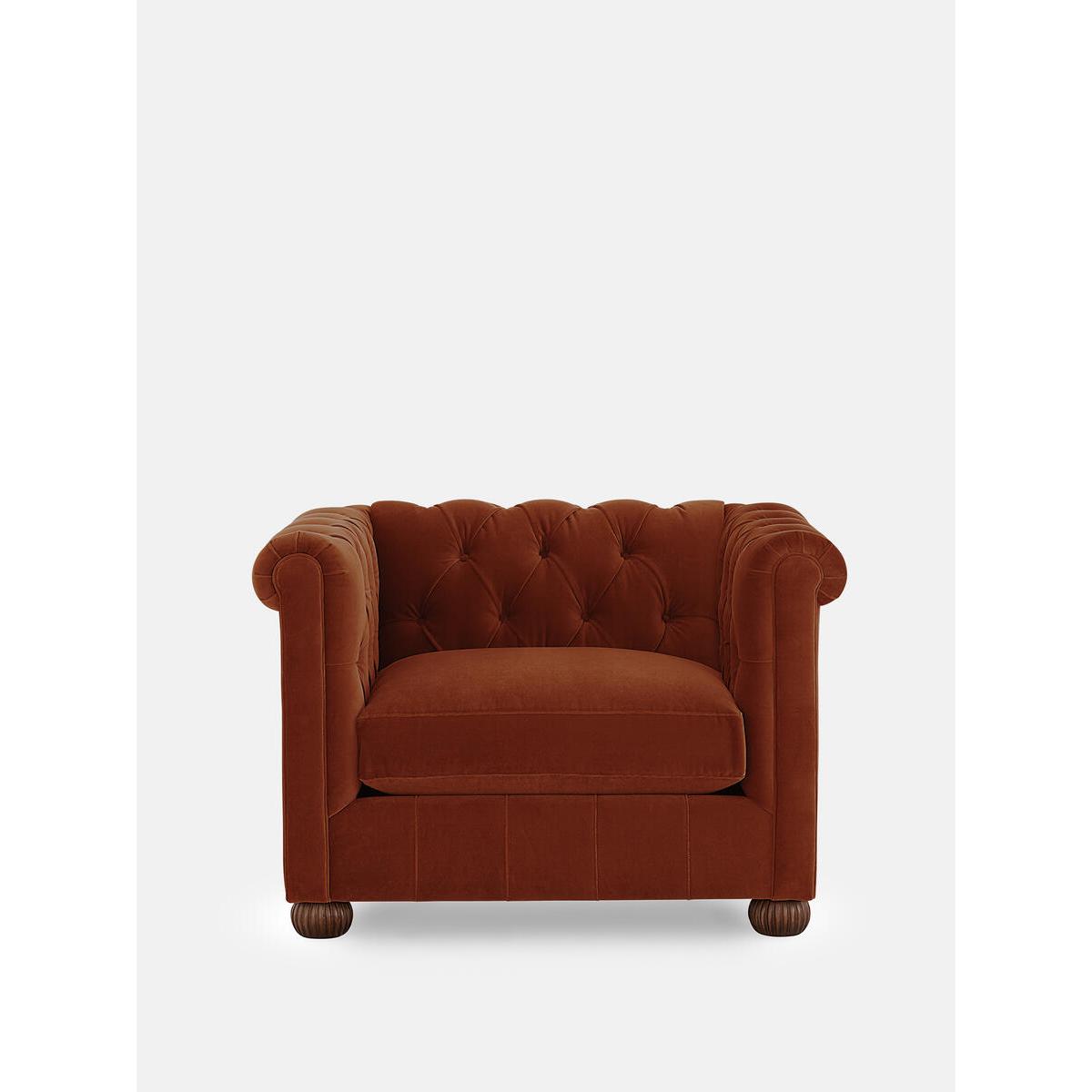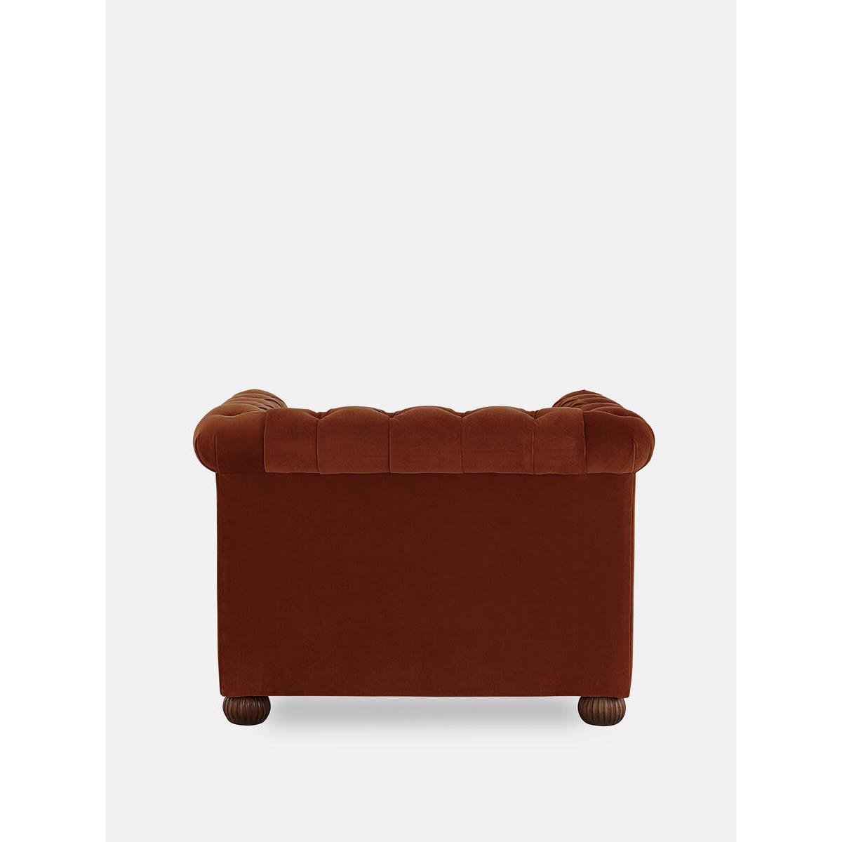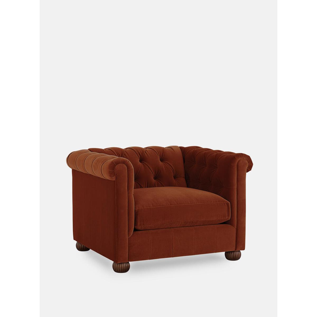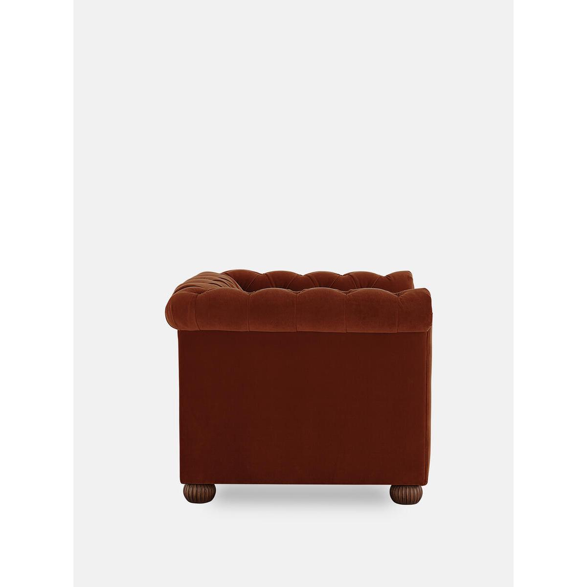 The Aderyn velvet armchair is inspired by the comfort of the British Chesterfield sofa, a favourite in our first House at 40 Greek Street. Our modern take includes fluted wooden bun legs, aremovable and reversible seat cushion, and a feather wraparoundfoam core. The back rest is angled to offer a deep, comfortablesit. Pair with the Aderyn sofa for a coordinated living roomscheme. Velvet armchair. Fluted wooden bun legs. Removable and reversible seat cushion. Wraparound foam core. Angled back rest for comfort. Pair with the matching sofa. Inspired by Soho House 40 Greek Street.
