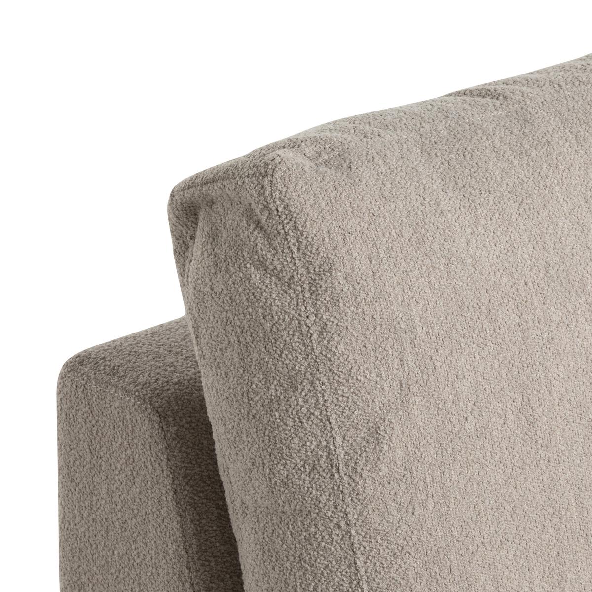 I love this one’s clean, understated look that easily complements a variety of interiors, from contemporary to more relaxed, casual spaces. Its neutral fabric makes it a versatile choice, perfect for layering with colourful cushions or throws for added personality. The absence of armrests gives it a sleek silhouette and invites flexible arrangement - it works well in small or open-plan living rooms where space is at a premium. Practical styling tips include pairing it with other neutral tones for a calming scheme or contrasting it with bolder accents to add interest. It’s a comfortable, adaptable piece that can serve as a solo statement or work alongside other seating in a multi-functional family lounge.